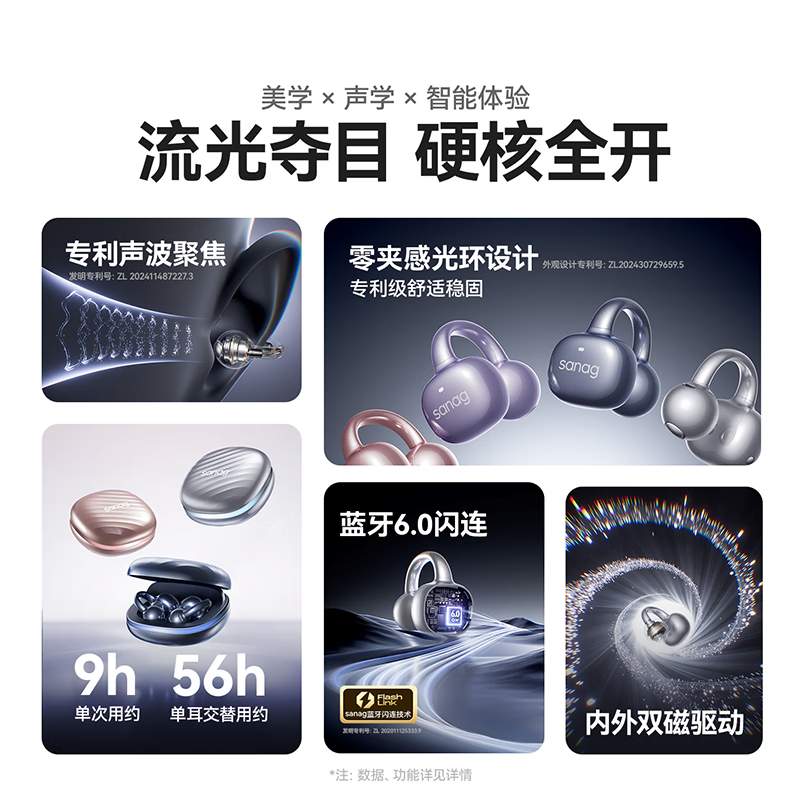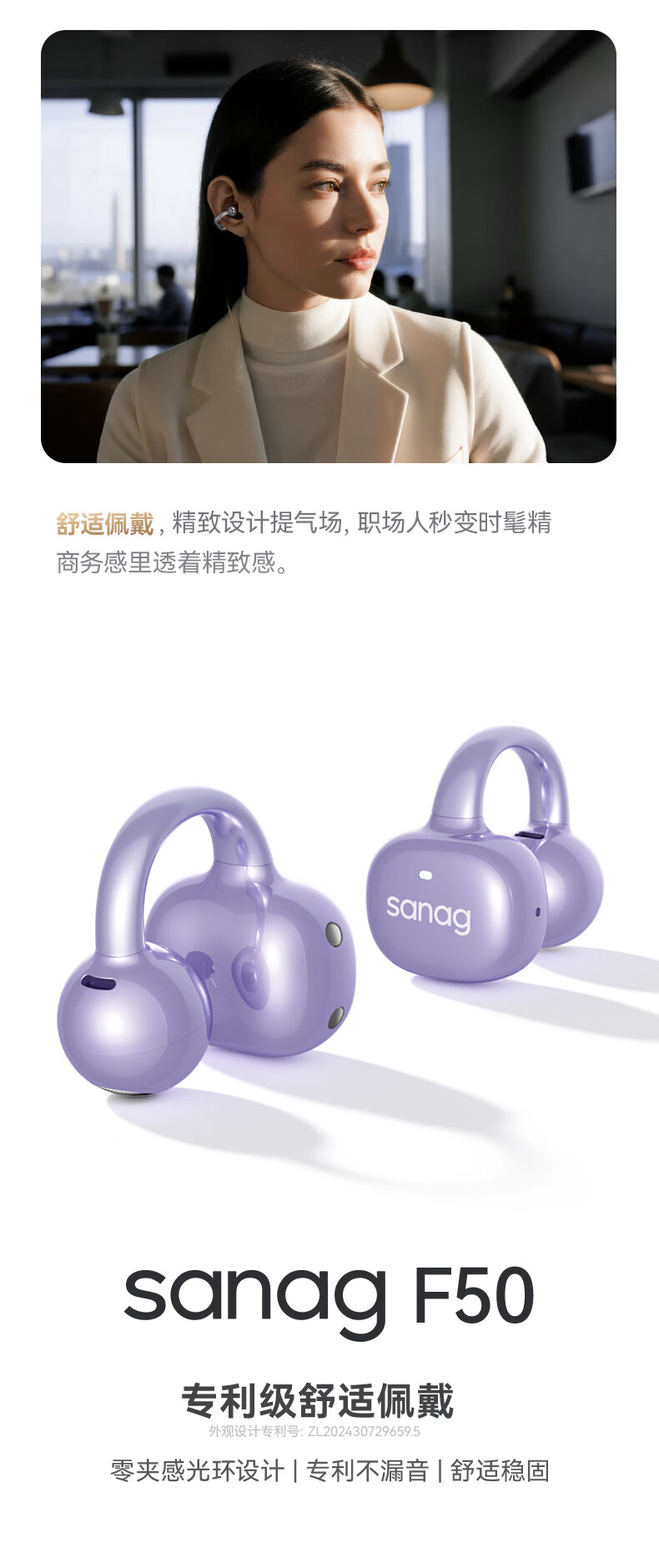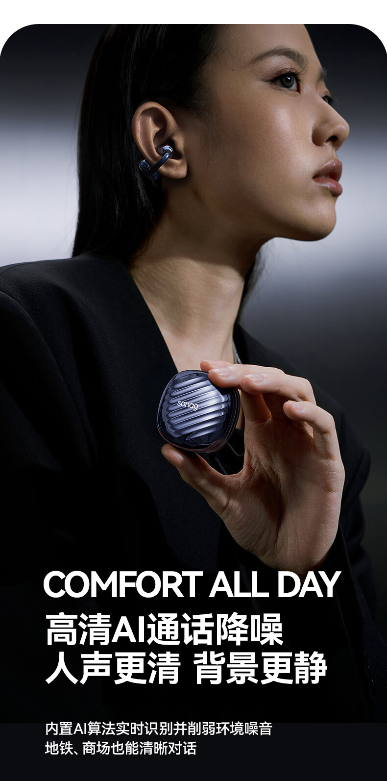 sanag塞那 AI翻译耳夹式蓝牙耳机F50