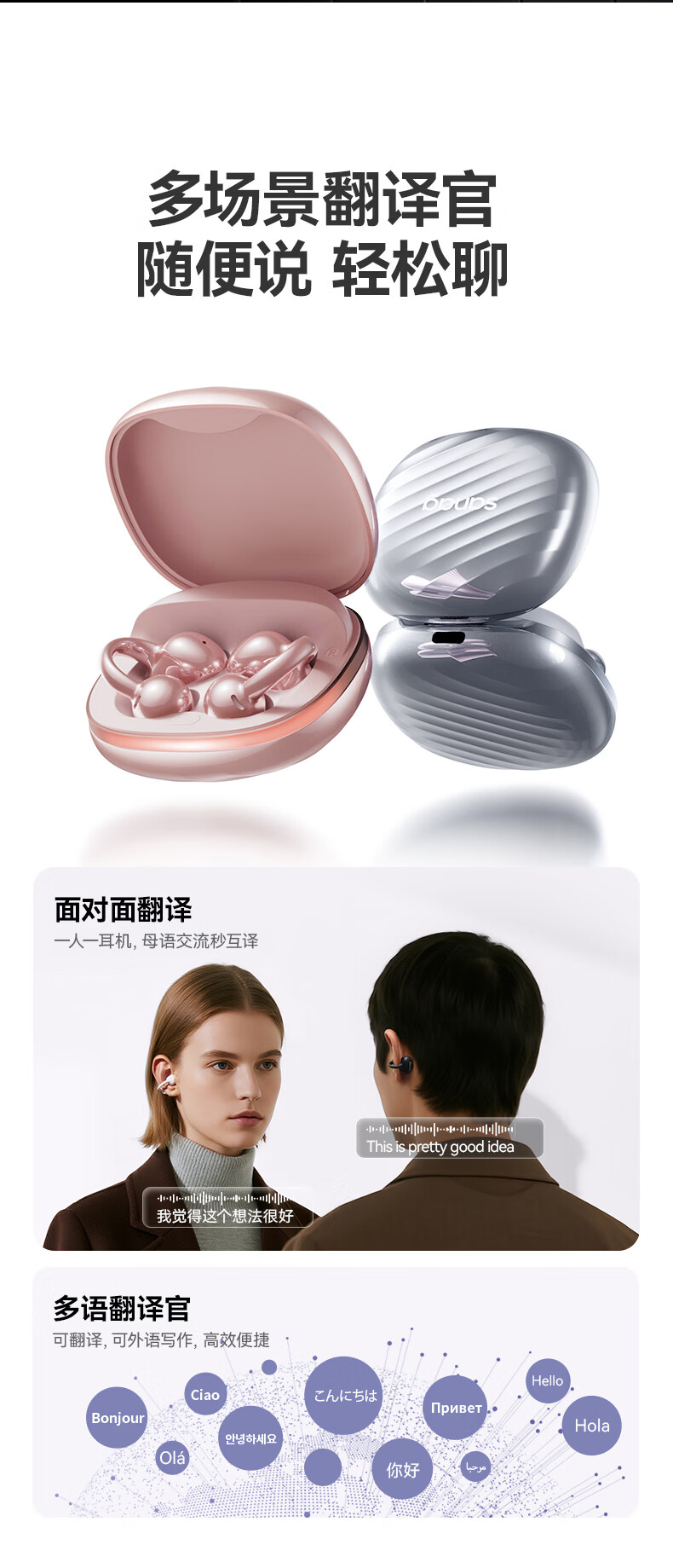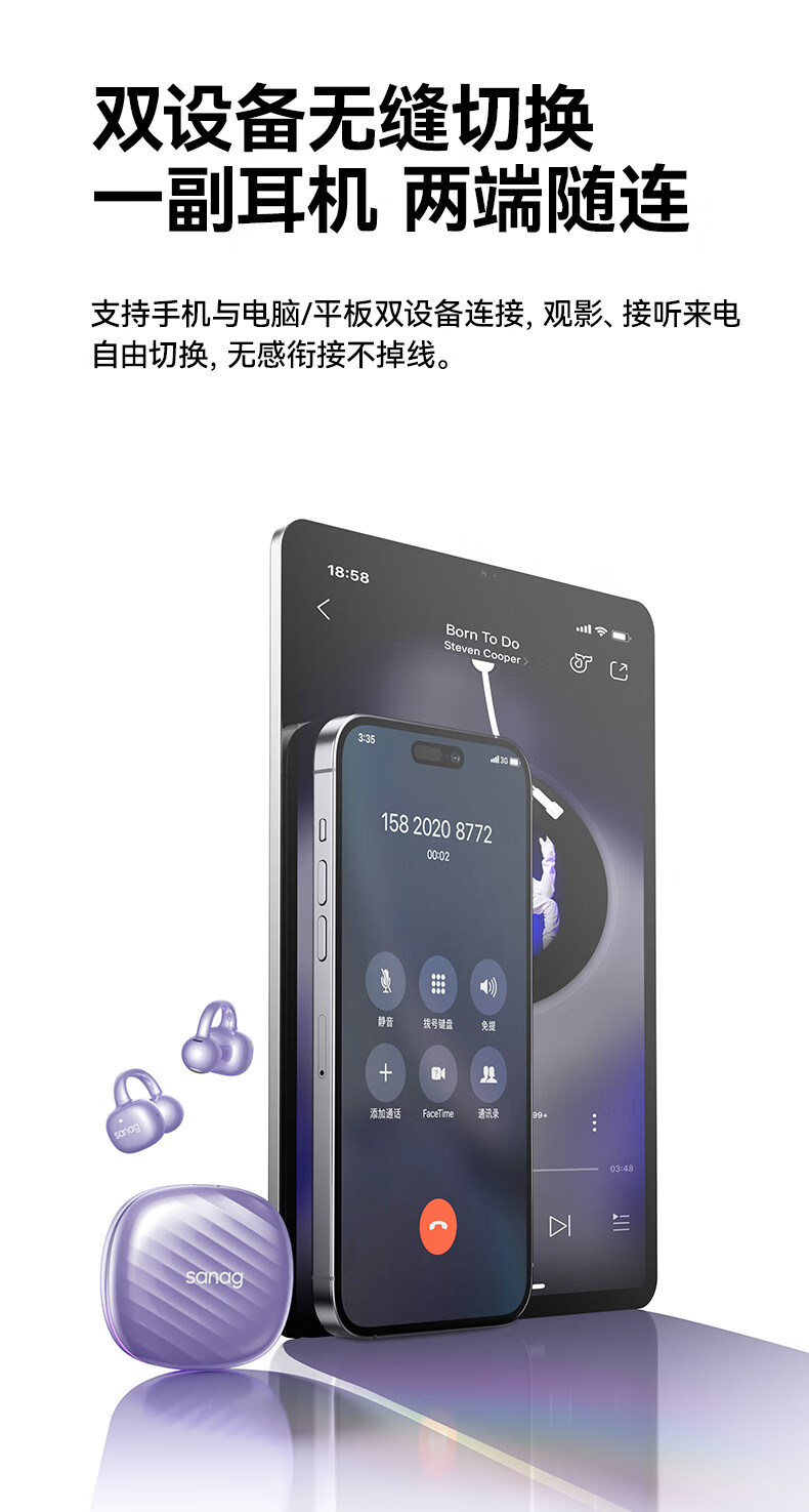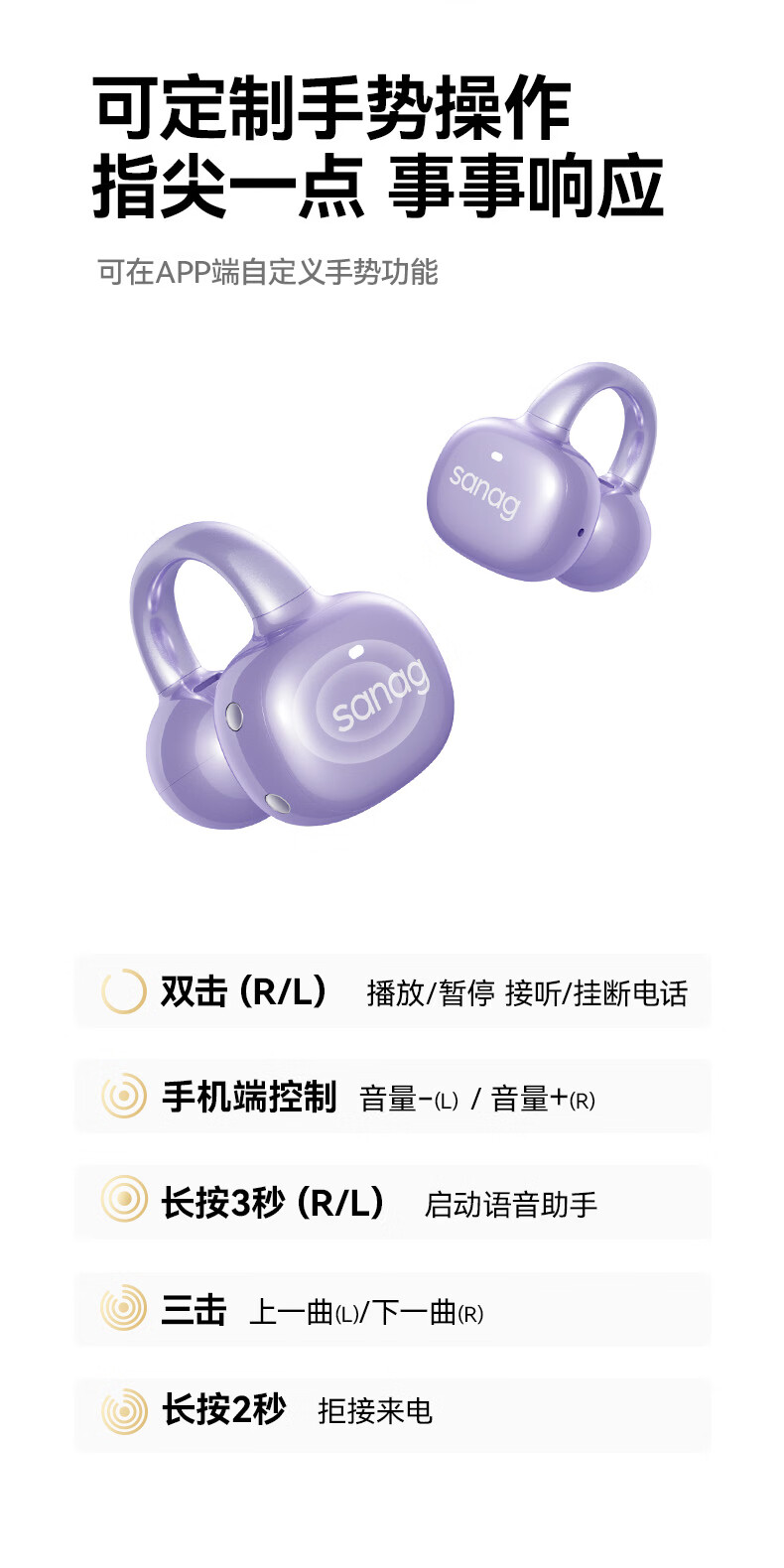 sanag塞那 AI翻译耳夹式蓝牙耳机F50