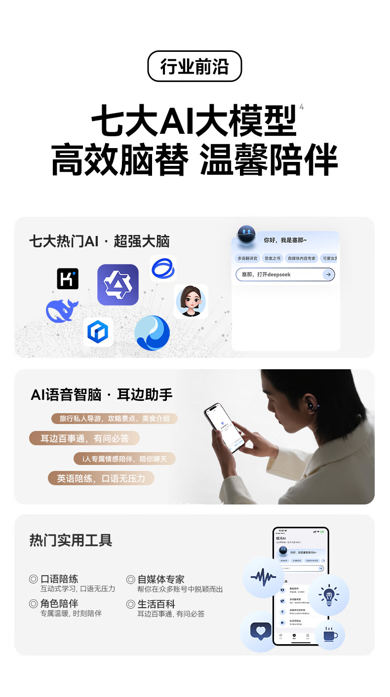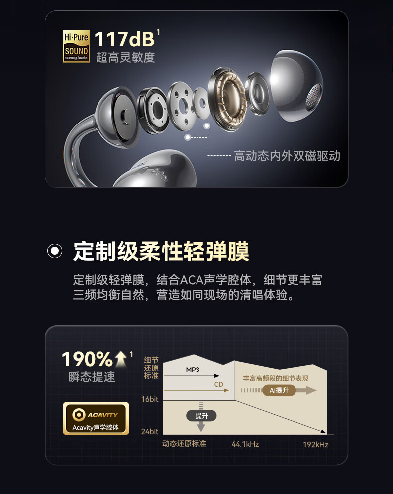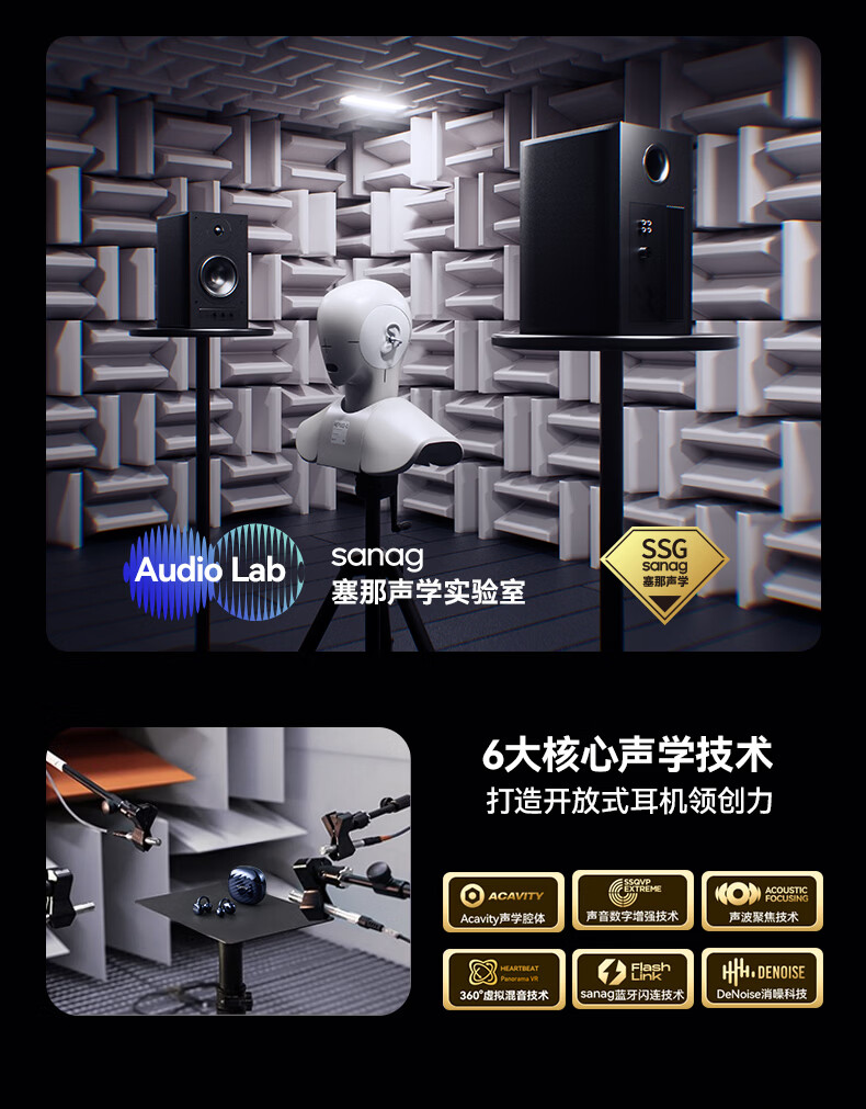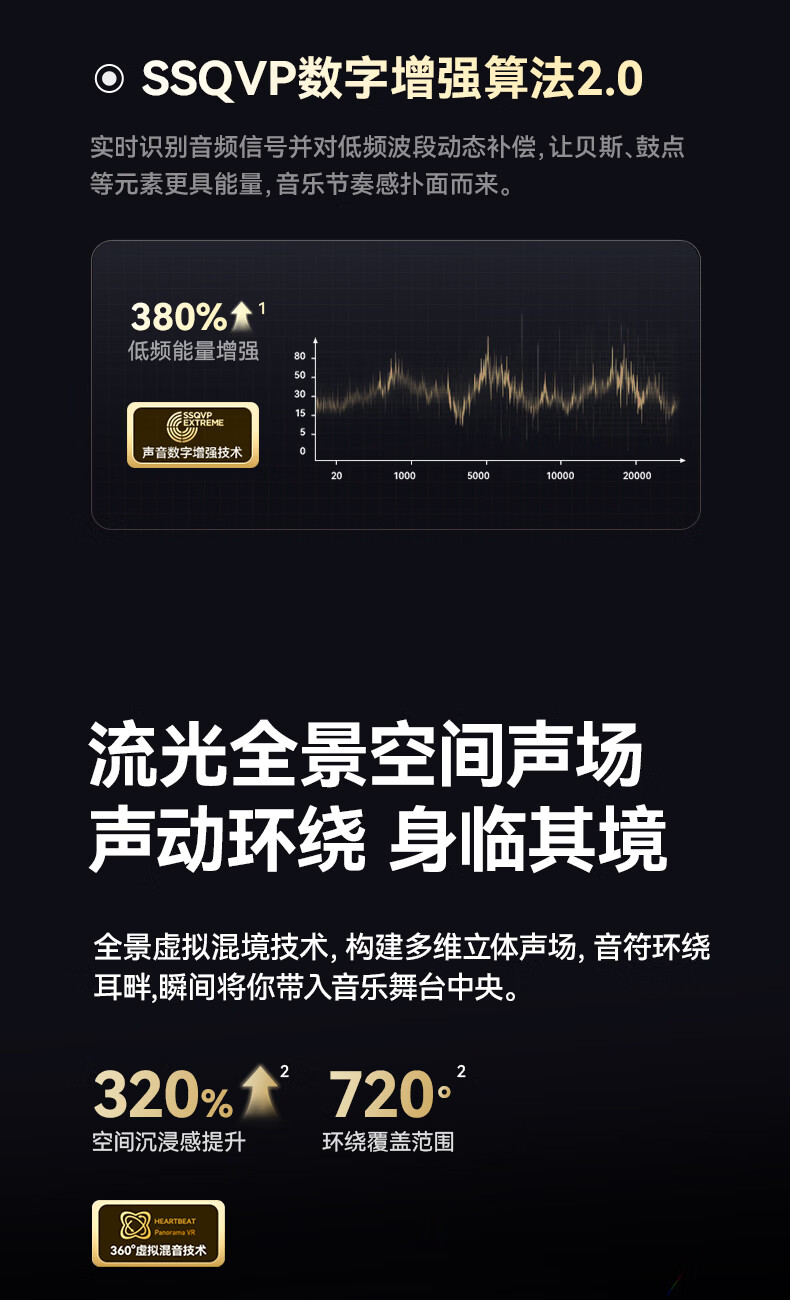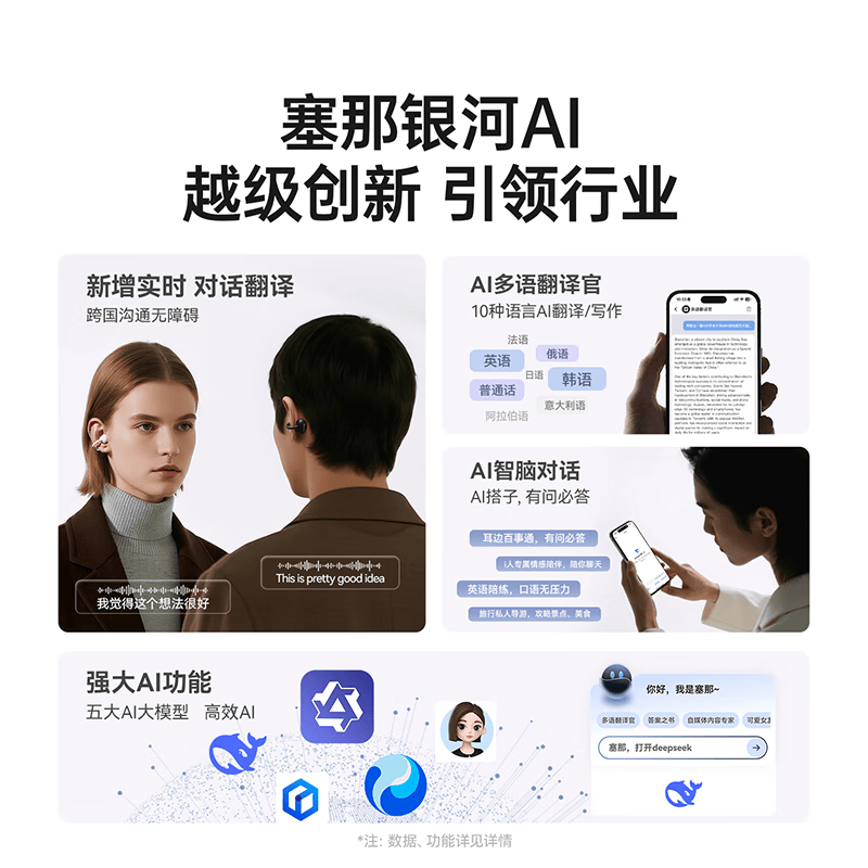 流光全景空间声场,生动环绕,身临其境;语音控制、同传翻译、面对面翻译;几何”流光浮雕“结构,捕捉动态光线流动