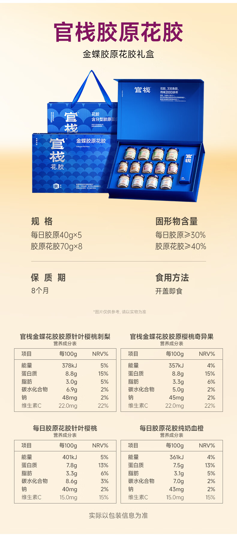 官栈 养肤金蝶胶原花胶礼盒760g