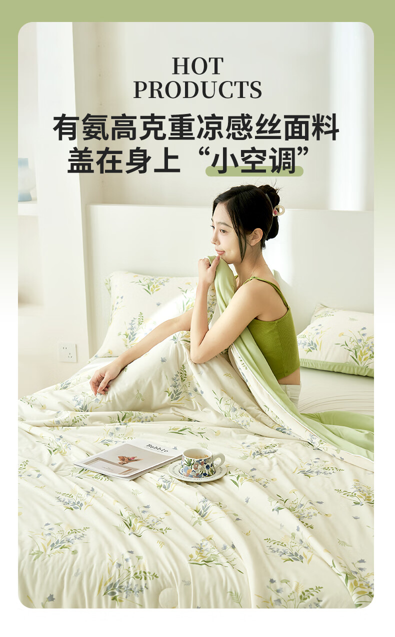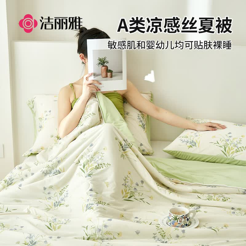 洁丽雅 A类面料凉感丝夏凉被冰丝被仙草