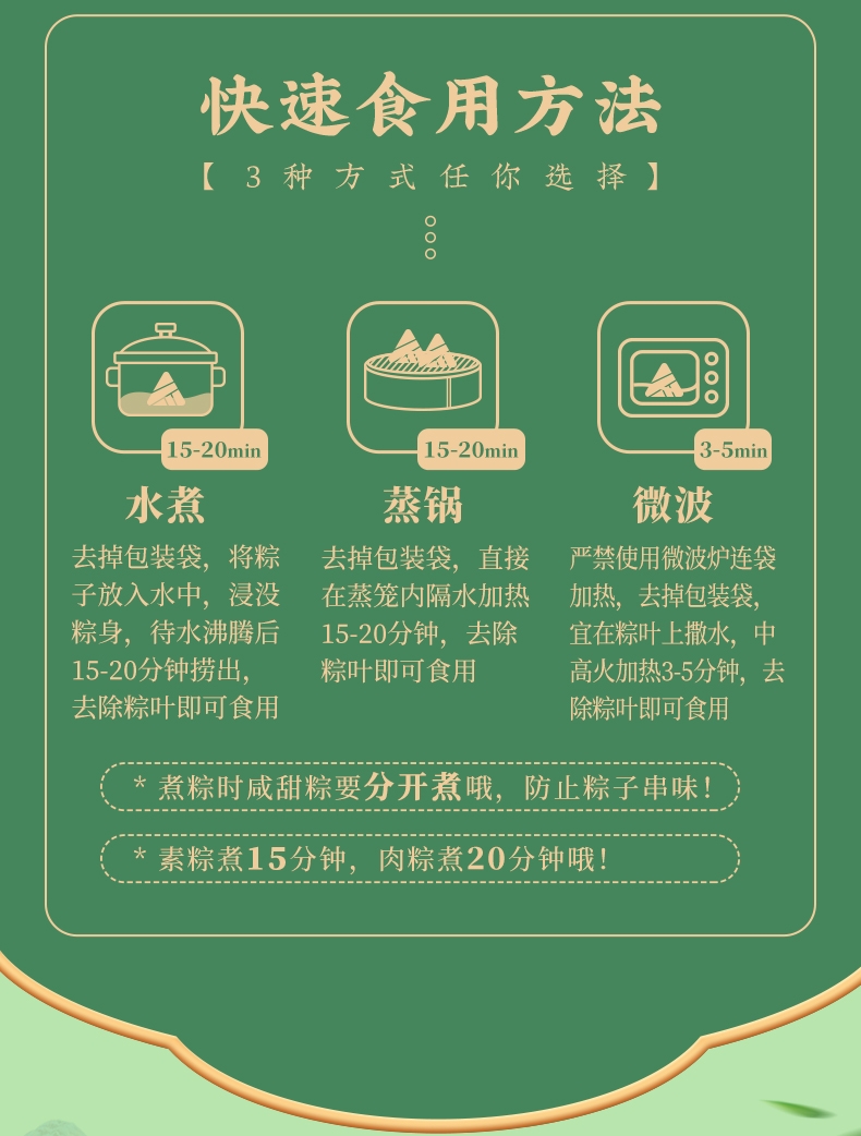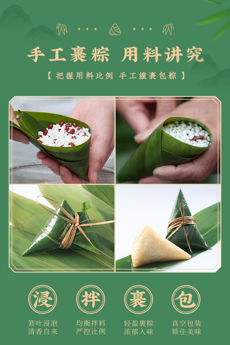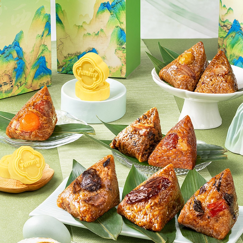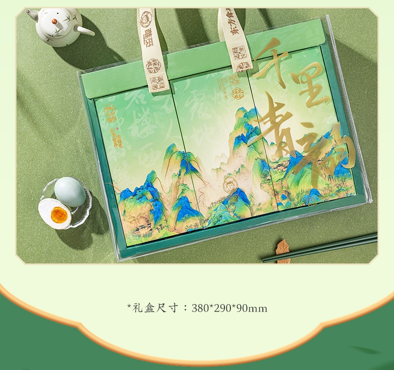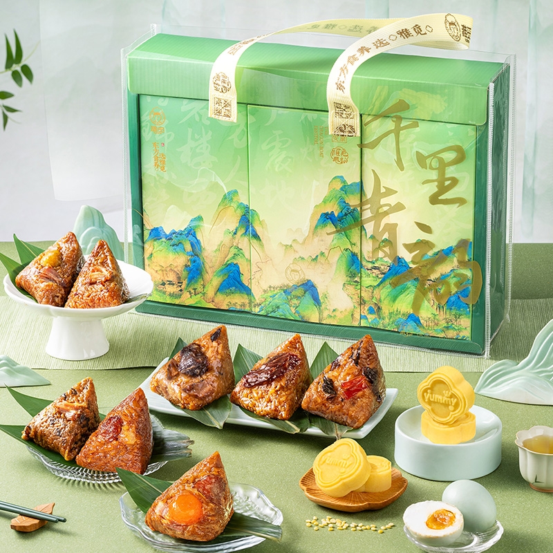 配置清单:精典鲜肉粽110g*2 招牌蛋黄肉粽110g*2 双鲜梅干菜猪肉粽110g*2 栗子鲜肉粽110g*1 沙茶菌菇牛肉粽110g*1 火腿羊肚菌上汤粽110g*1 秋耳藤椒牛肉粽110g*1 高邮特产咸鸭蛋55g*2 原味海藻糖绿豆糕30g*4