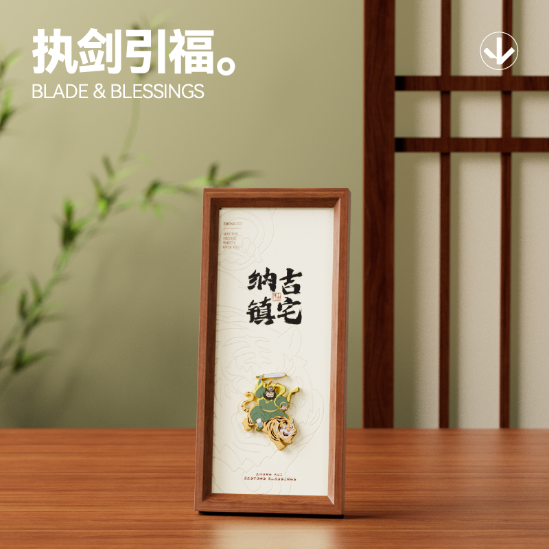 执剑引福|一盒藏风骨,端午送祥瑞;镇宅纳吉·徽章木框摆件,钟馗正气,凝于方寸之间;正气凝于案头,祥瑞藏于器中, 君子之风,日日相伴
