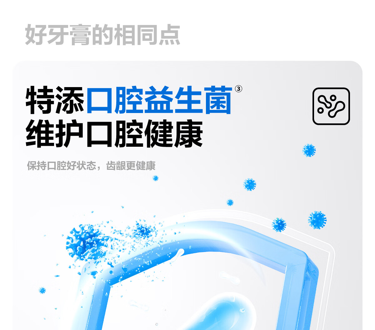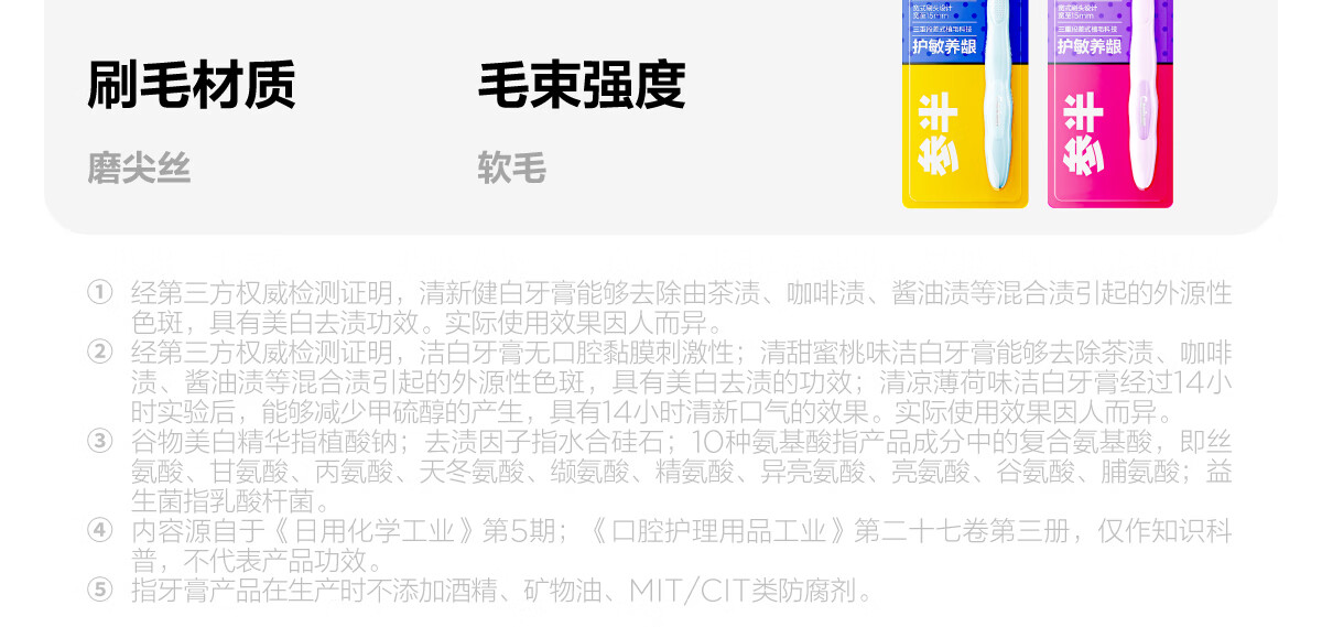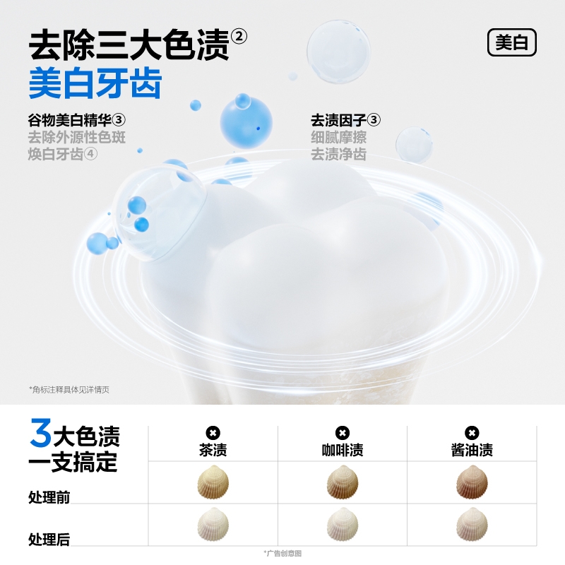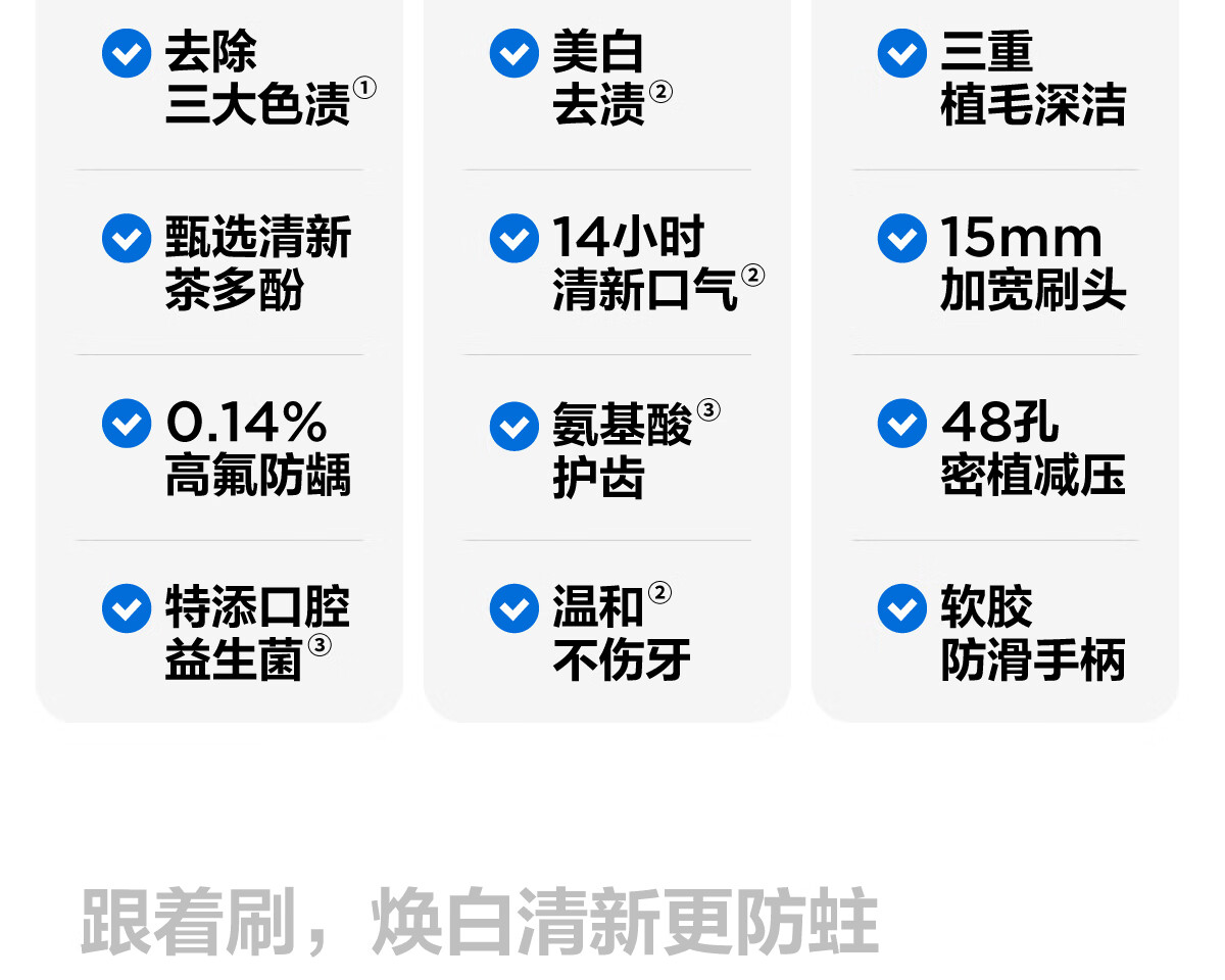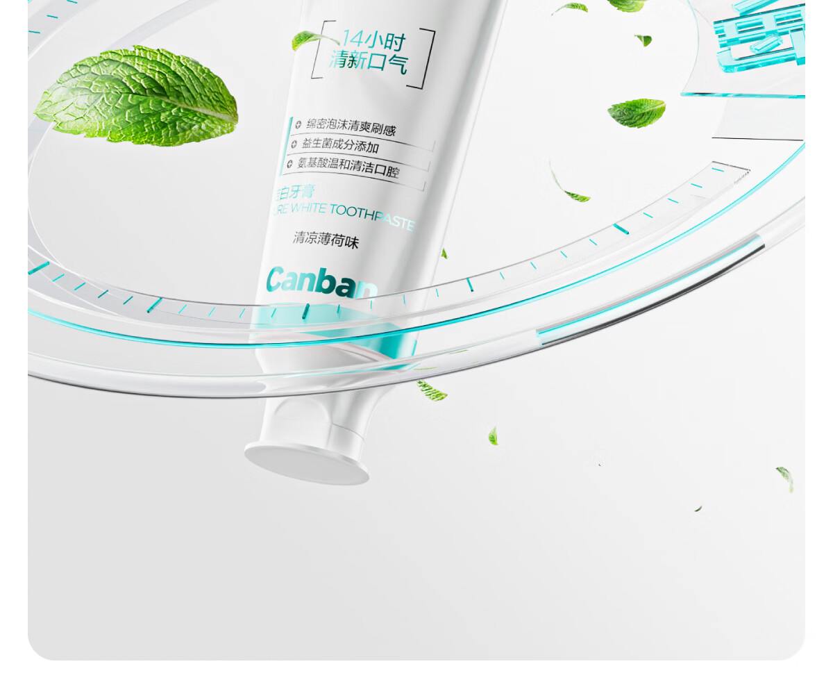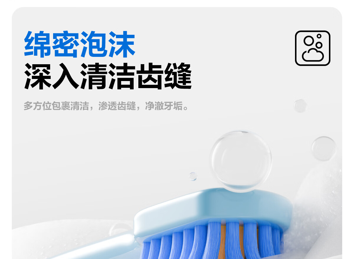 细腻摩擦去渍净齿;减轻口腔异味;绵密泡沫 深入清洁齿缝