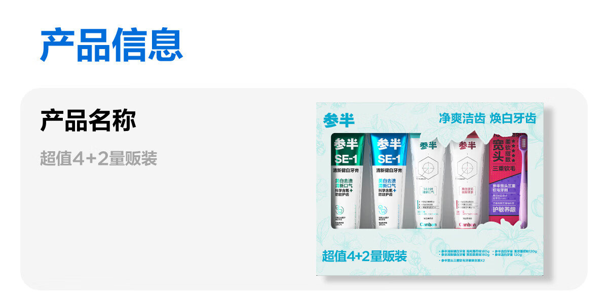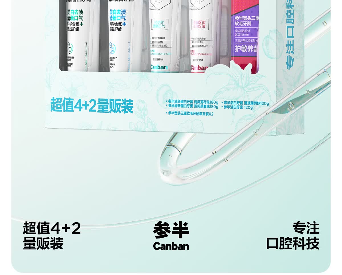 参半 美白牙膏成人护理4+2量贩装600g