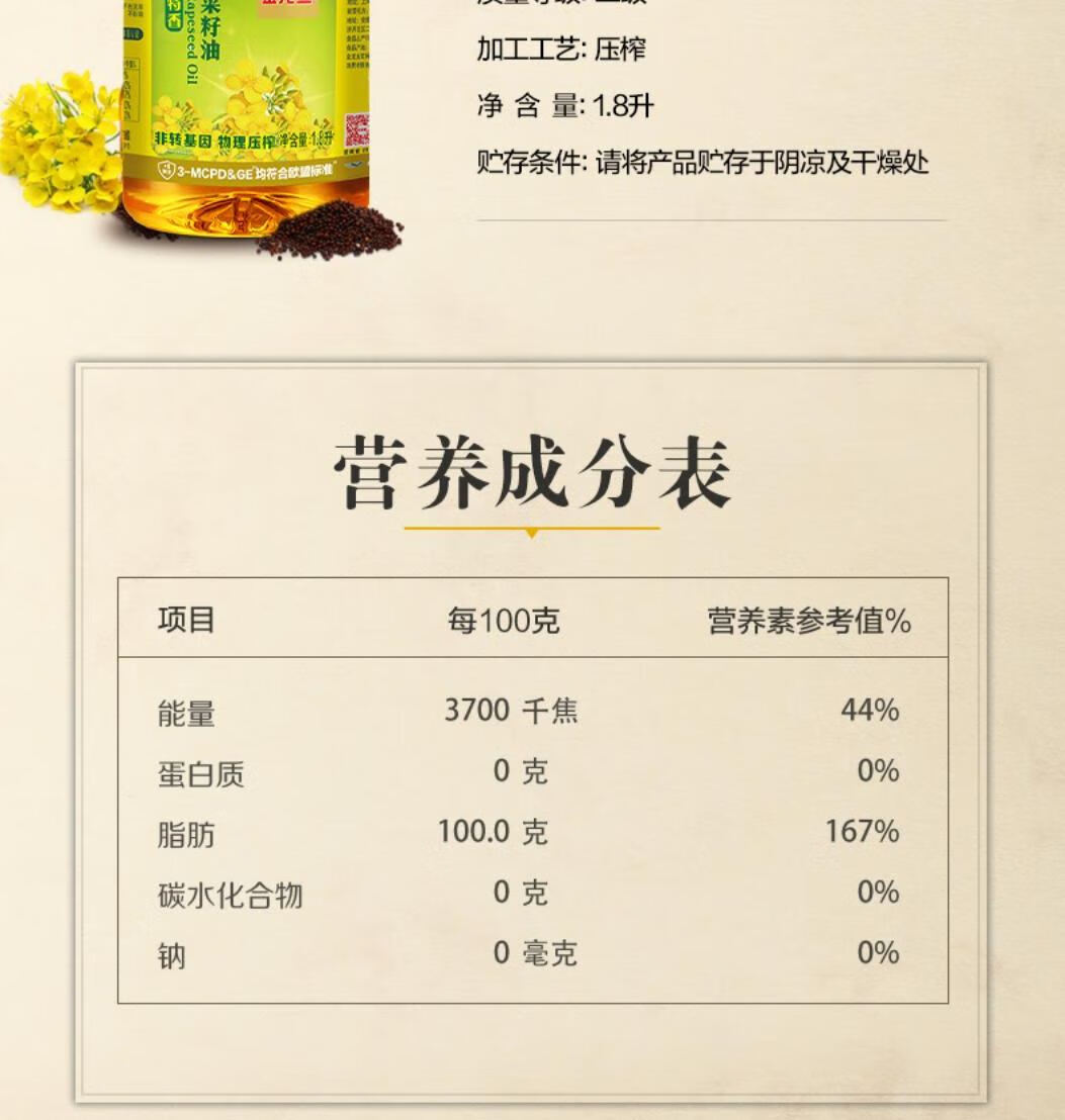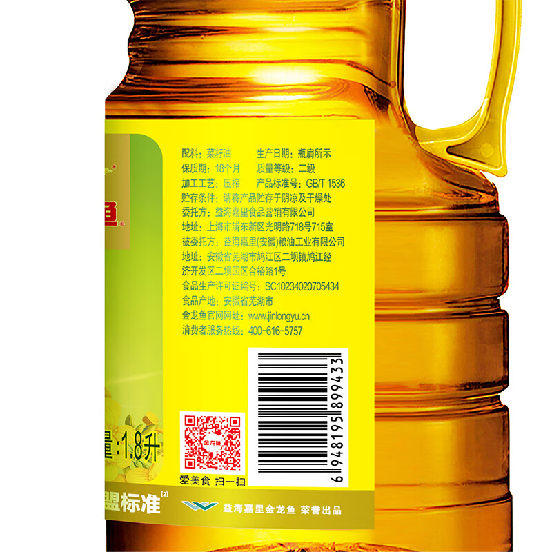 金龙鱼 甄选特香菜籽油非转基因1.8L
