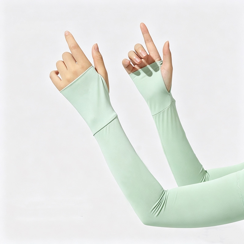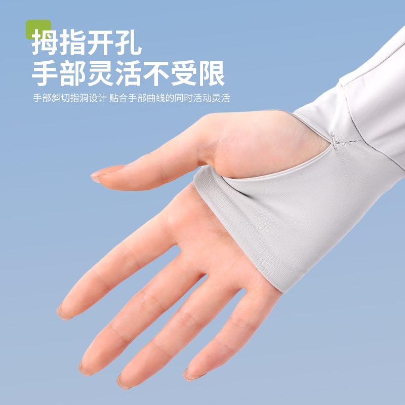 采用锦纶+氨纶混纺科技凉感防晒面料制作,凉感吸湿速;产品自带接触性凉感(不添加冷感助剂); 立体裁剪,;袖口升级硅胶防滑条设计,佩戴不易滑落; 防紫外线U