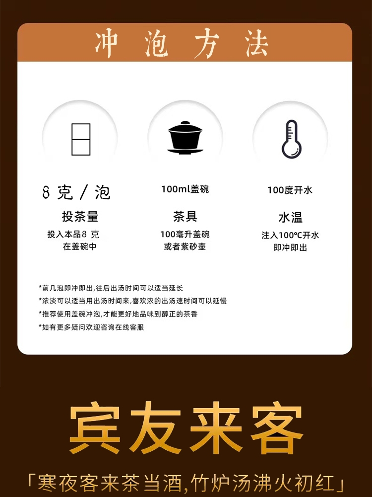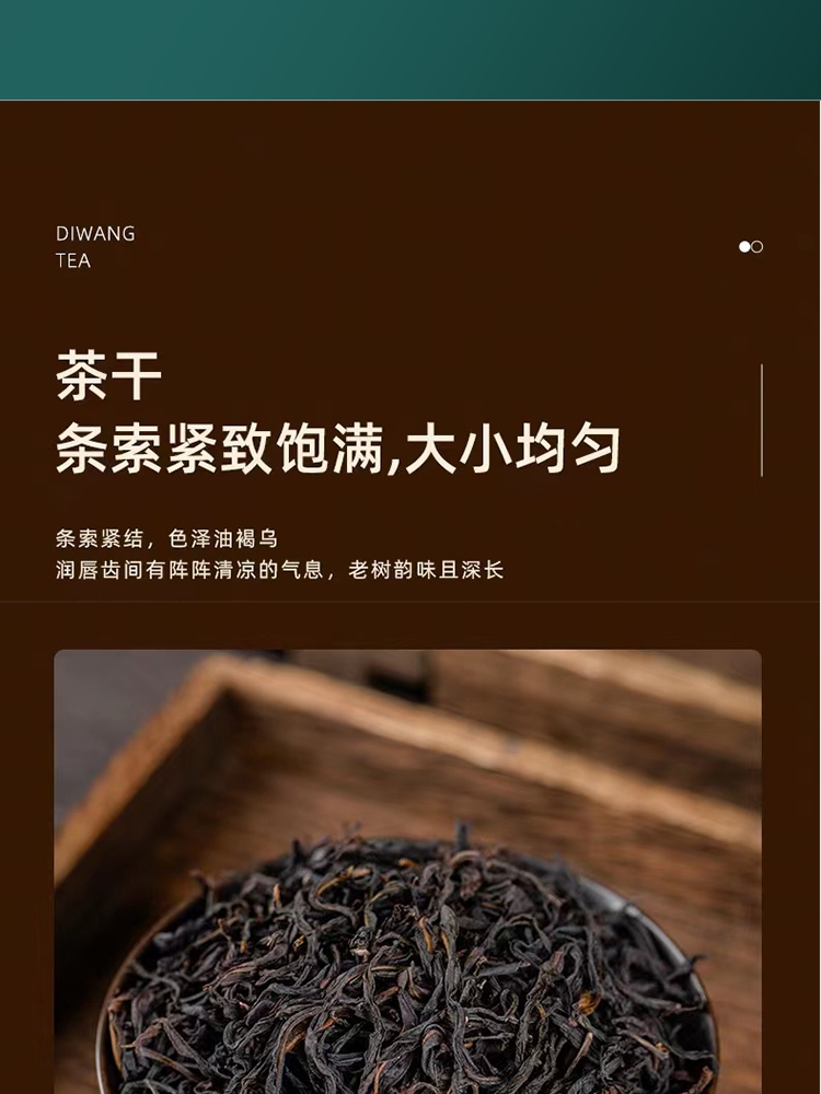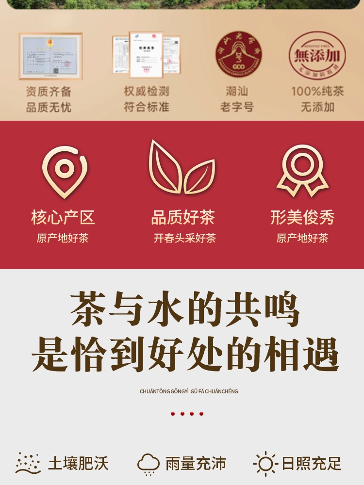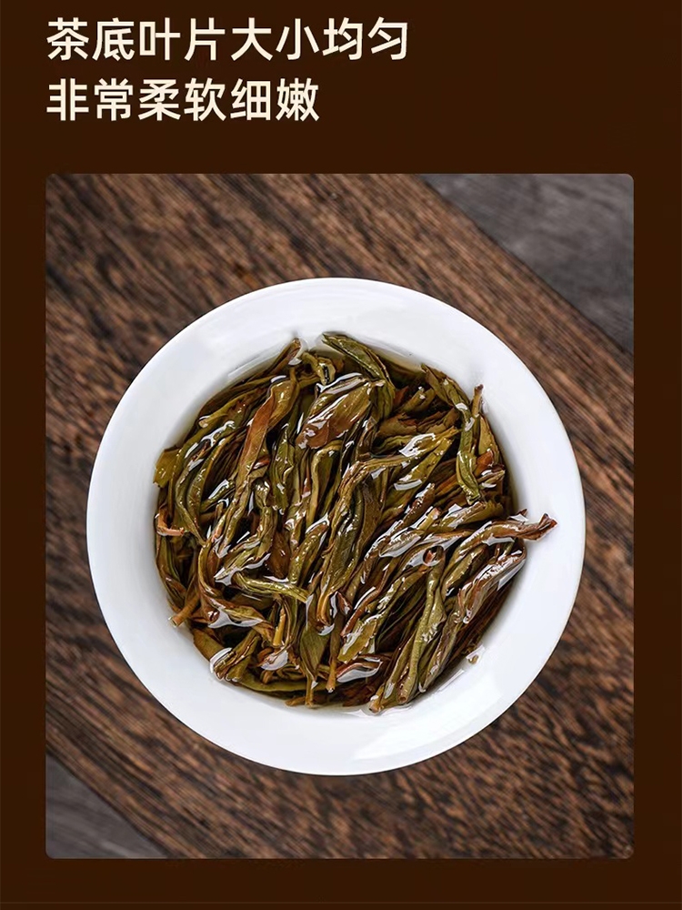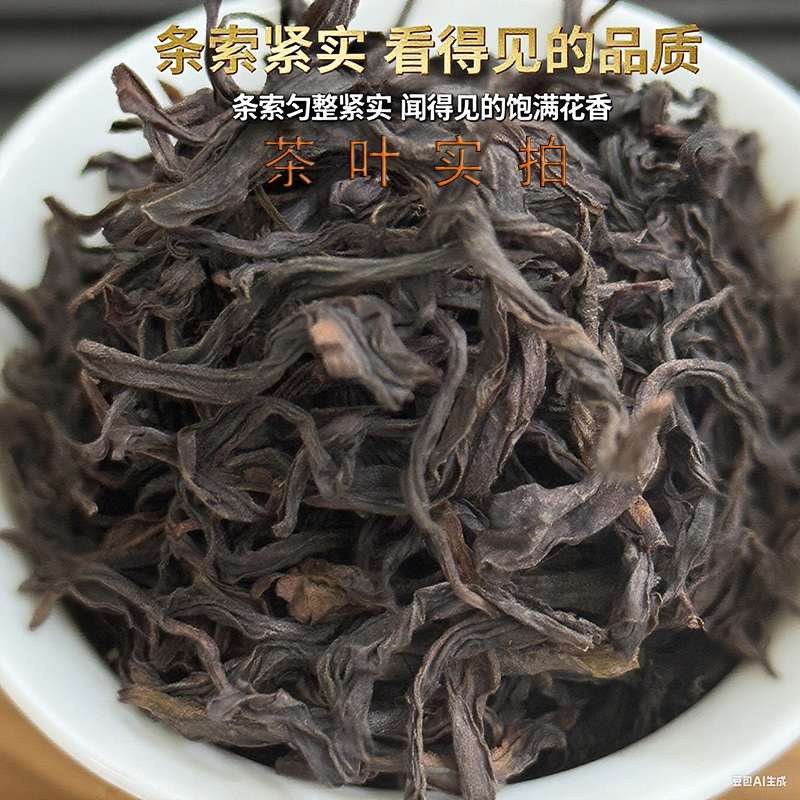 干茶外形紧结肥硕,色泽红褐或乌润,条索紧结较直;香气浓郁,独具兰花香和甜美的蜜香,两者交织在一起;汤色橙黄透亮,清澈明亮,表现出茶叶的高品质