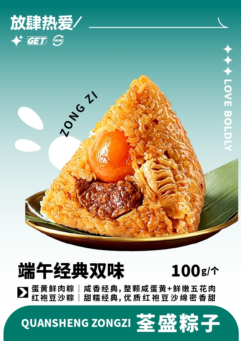 荃盛粽子:-蛋黄鲜肉、豆沙粽 100g/个