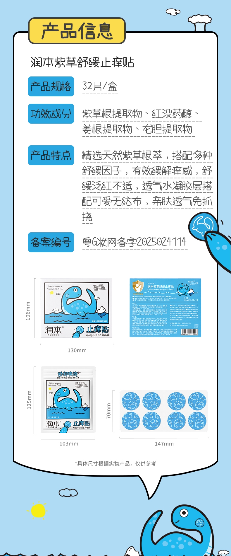 配置清单:润本紫草舒缓止痒贴 32贴/盒
