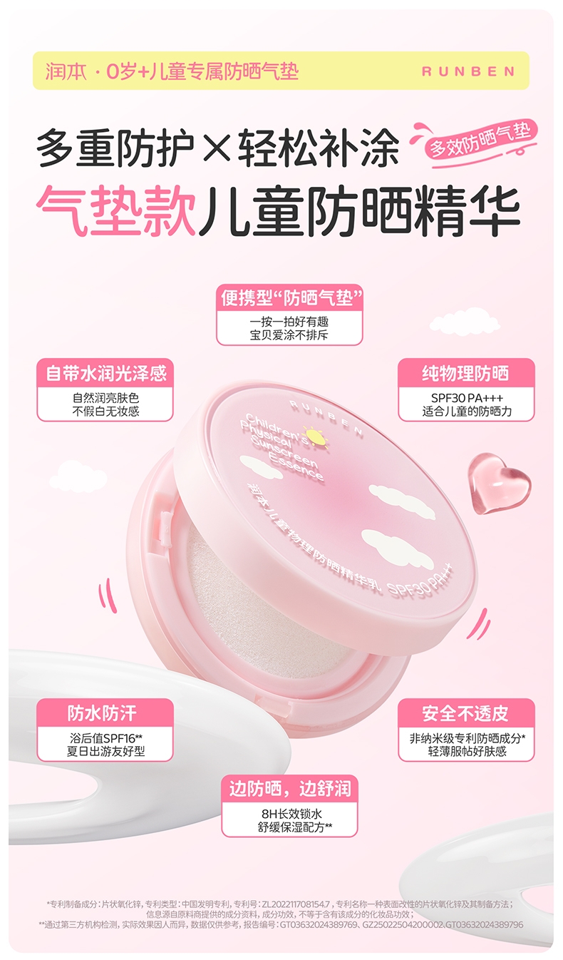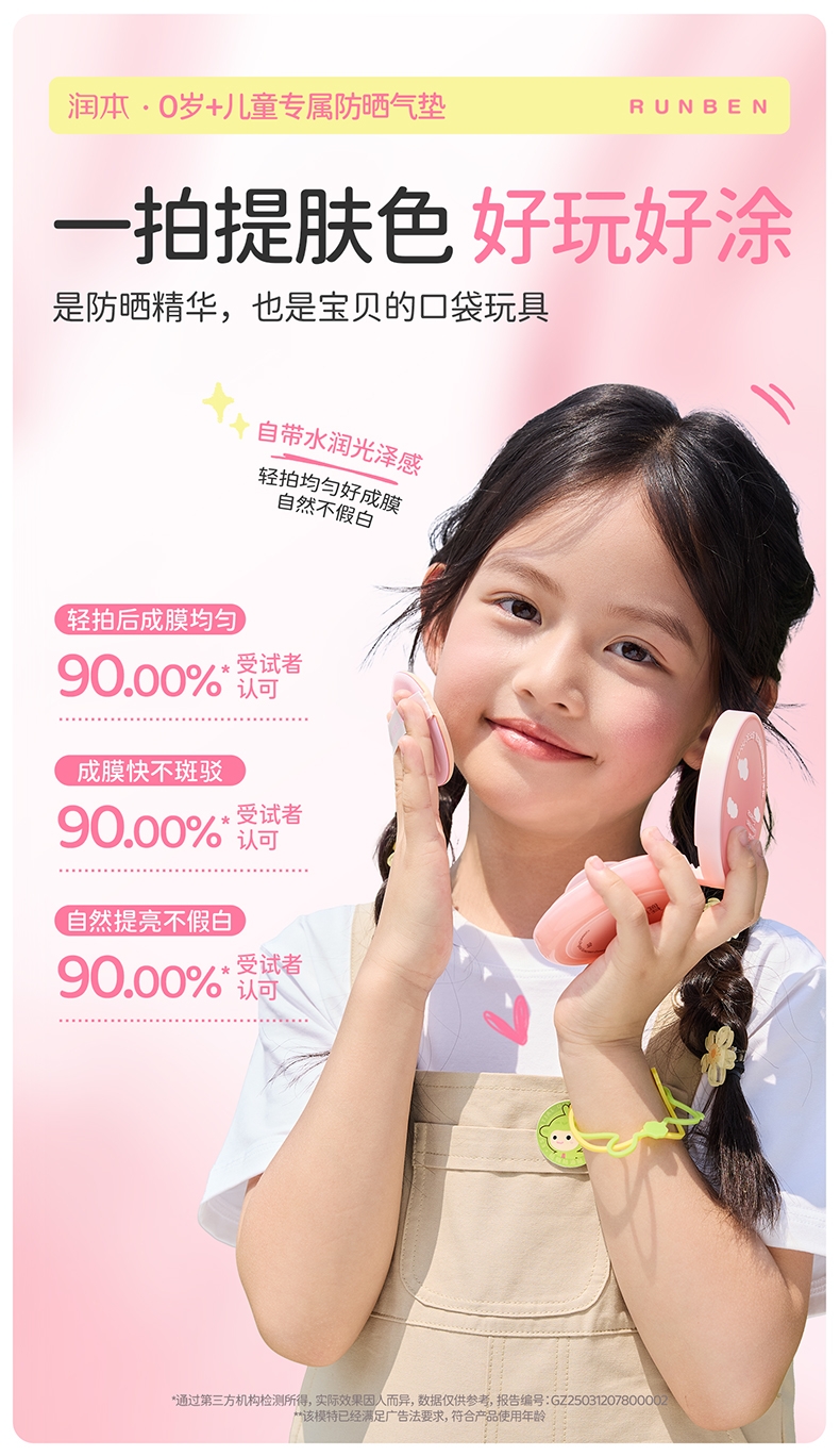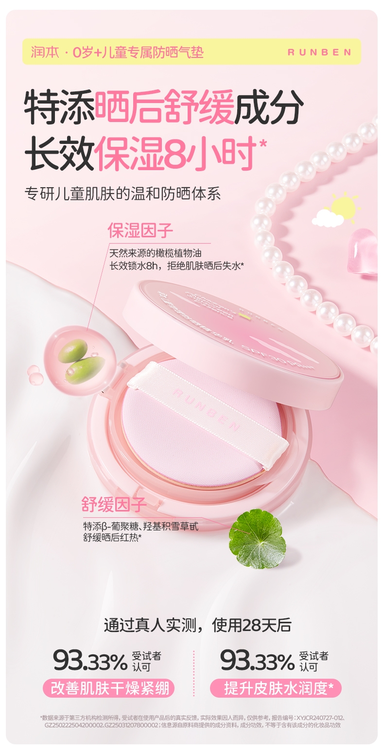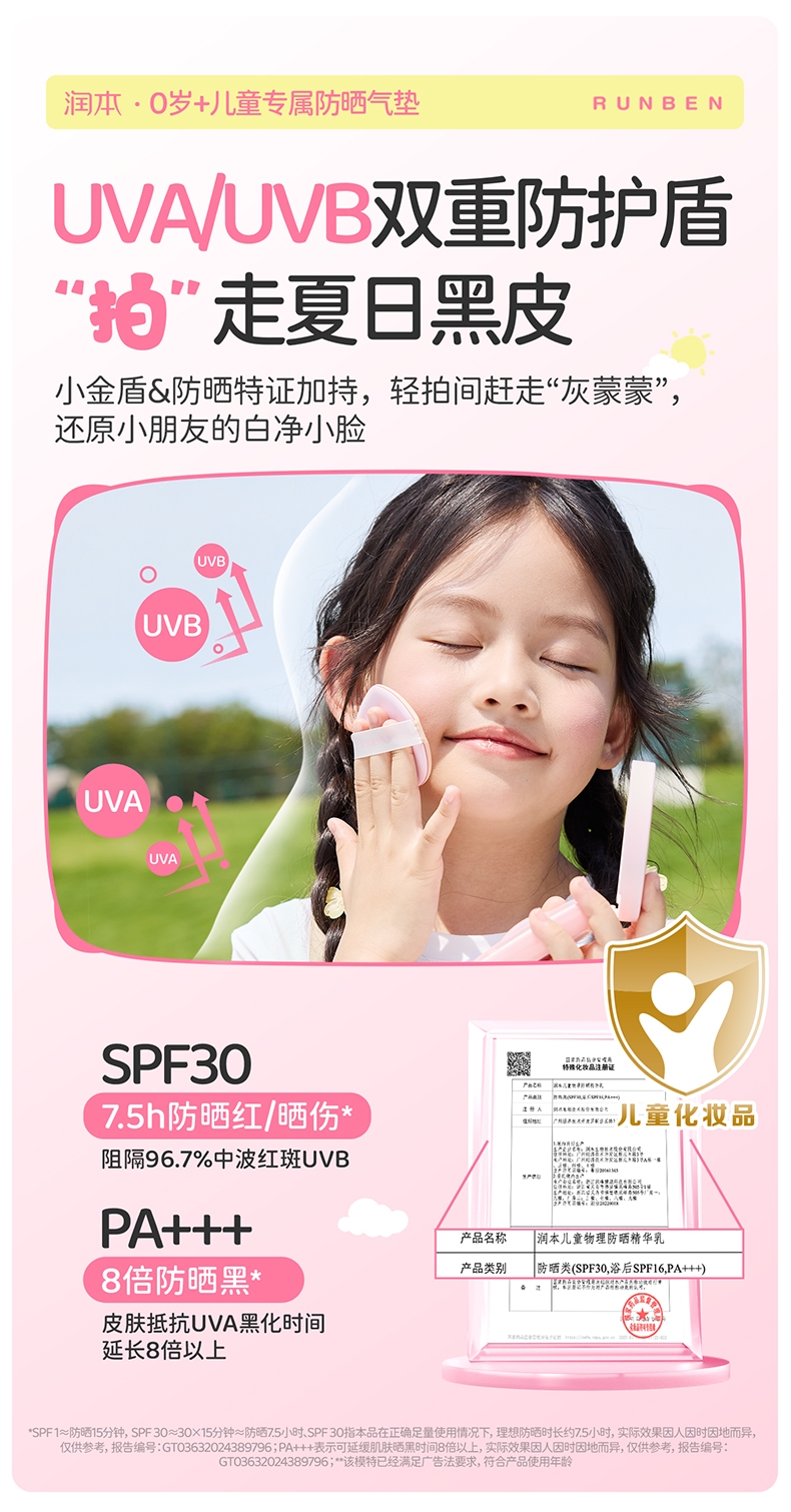 0岁以上儿童以及成人;气垫款设计,涂抹防晒更方便快捷;适合快速出门、外出补涂场景