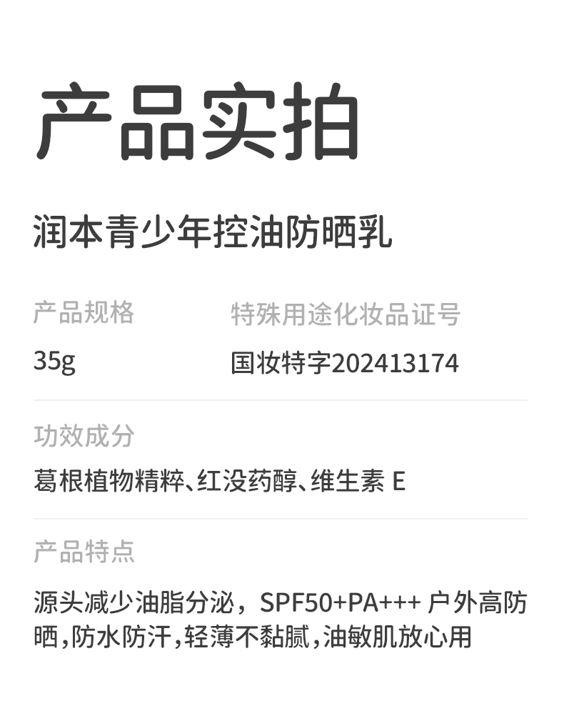 配置清单:润本青少年控油防晒乳35g*1