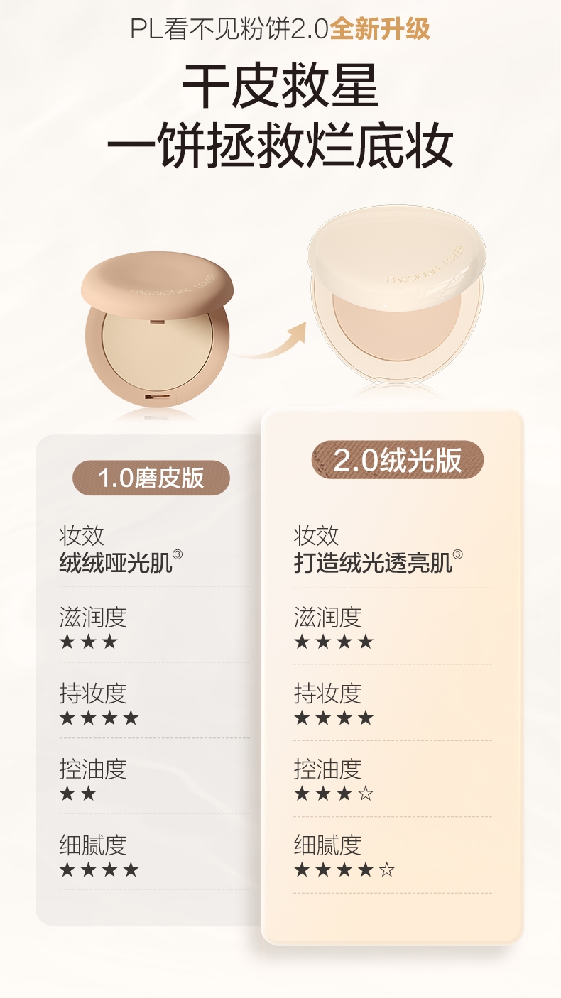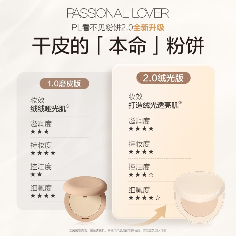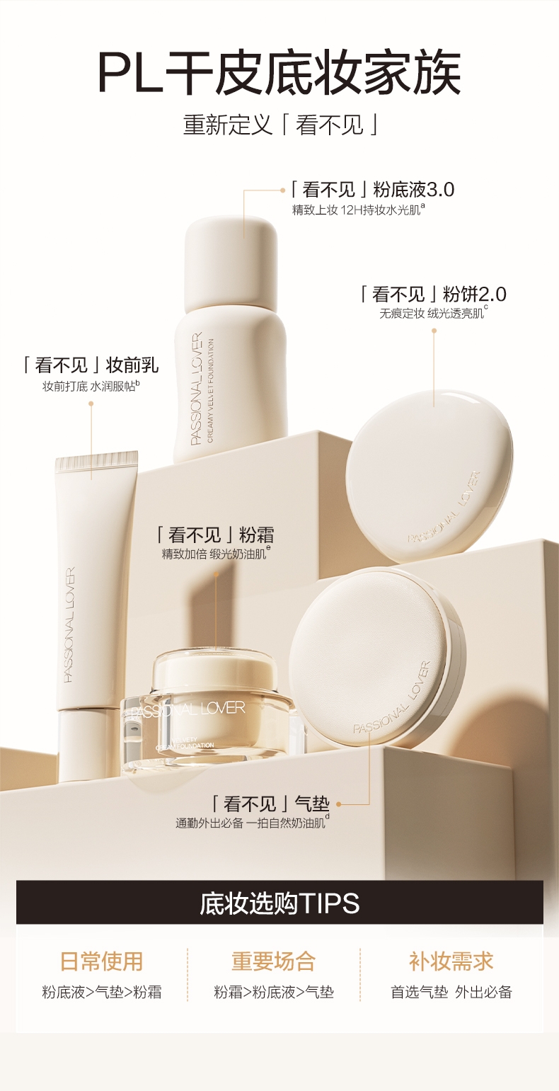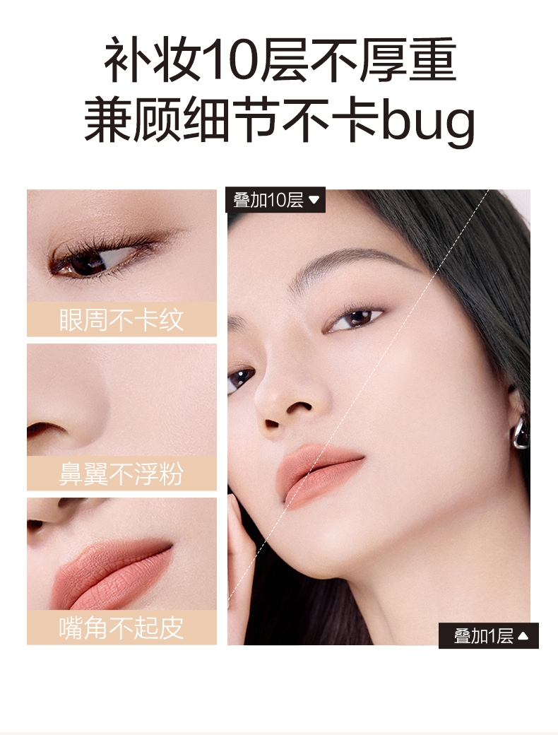 控油、修饰肤色、细致毛孔、不脱妆;1抹定妆自带光,10层补妆不厚重;16H控油持妆更保湿,更透亮