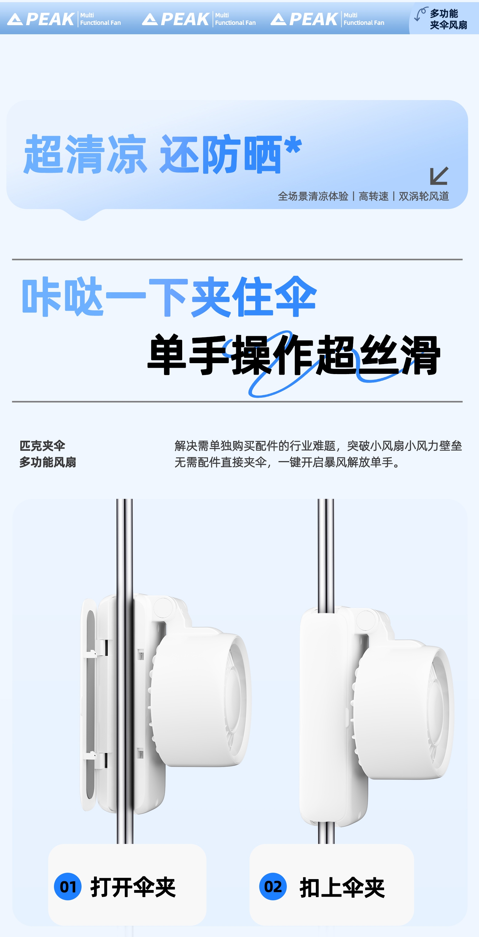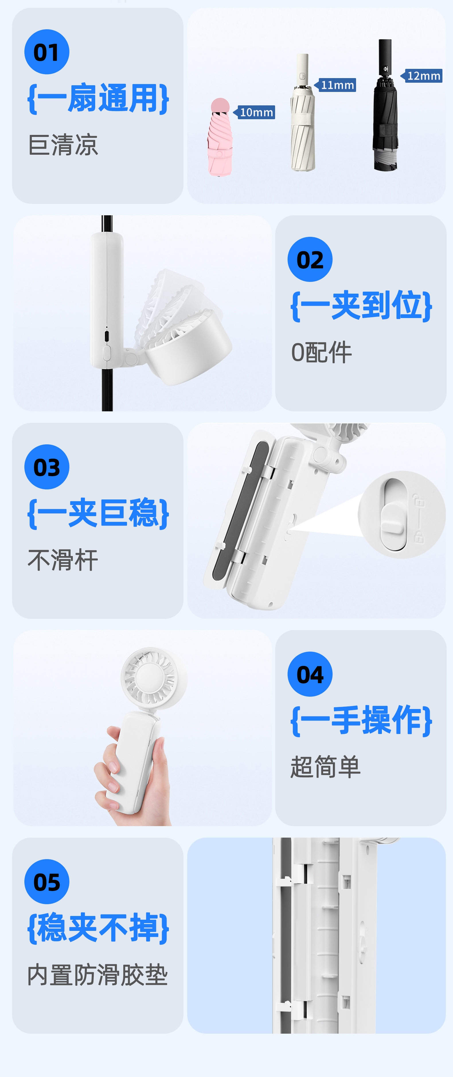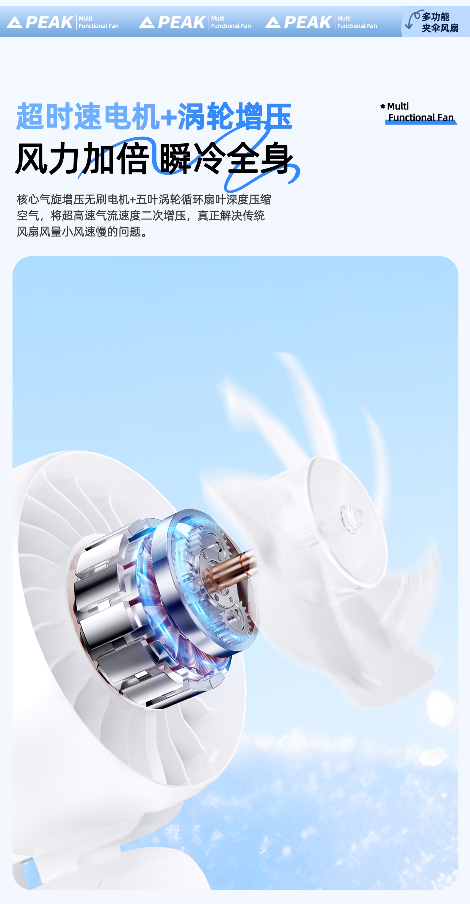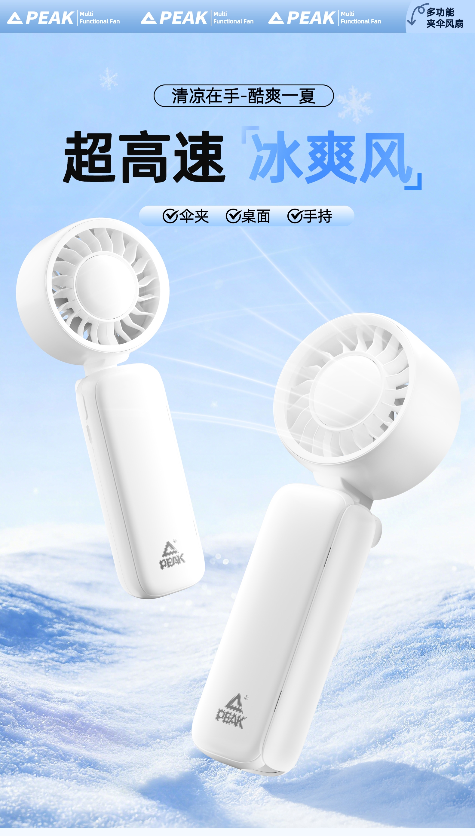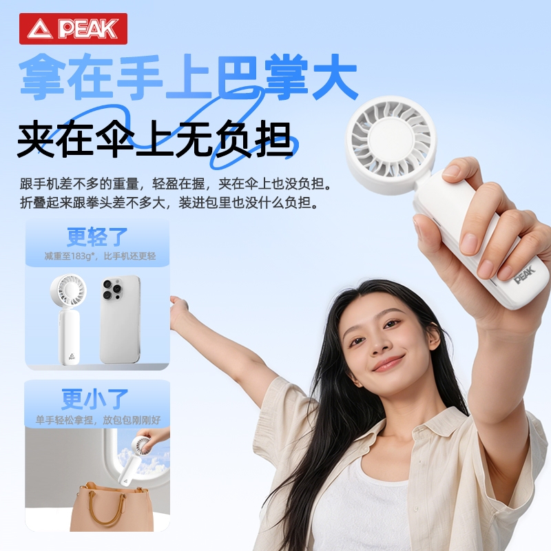 超高速冰爽风 灵动折叠 180°角度调节;USB接口 多种供电方式 轻松应对各种场景;;更低的音量 吹走所有坏心情