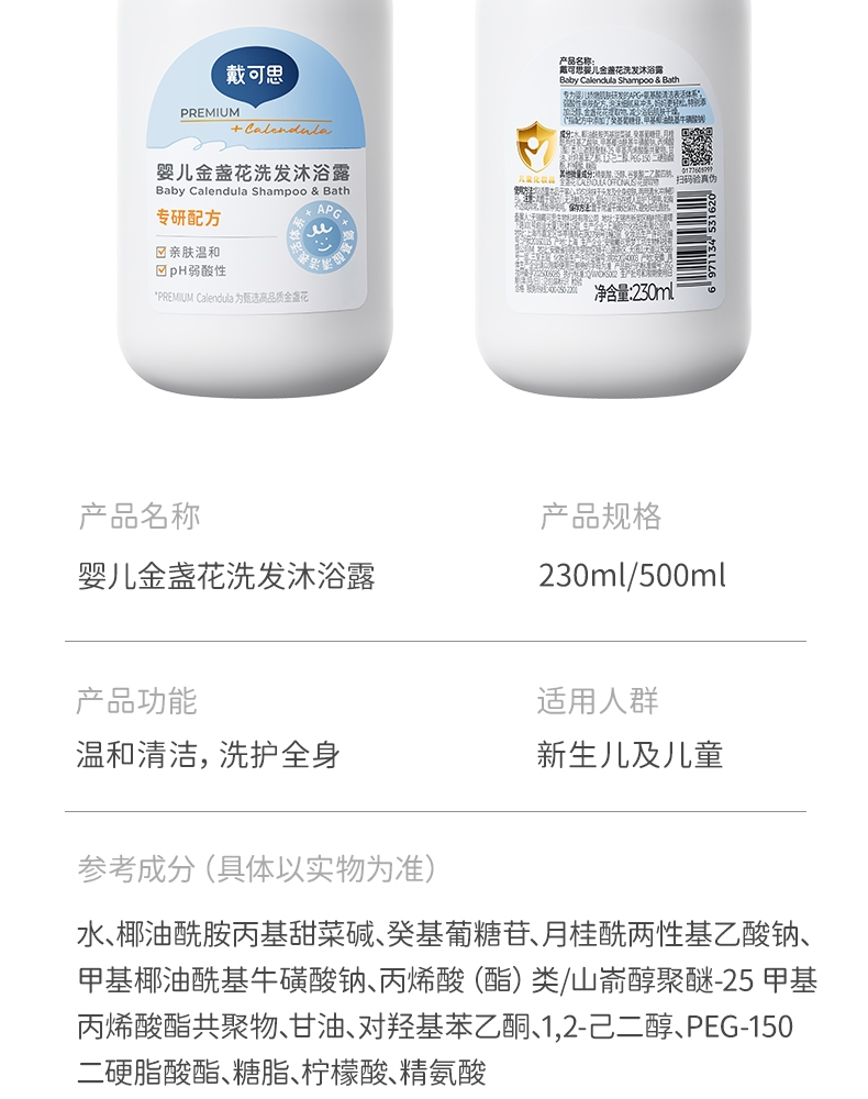戴可思 婴儿金盏花洗发沐浴500ml