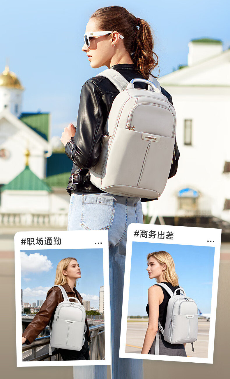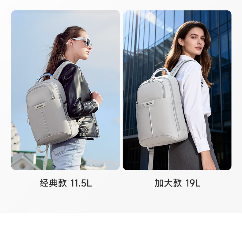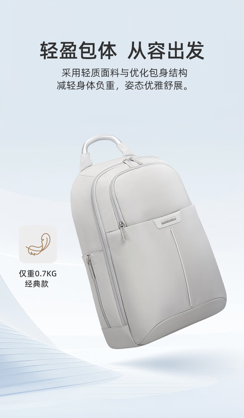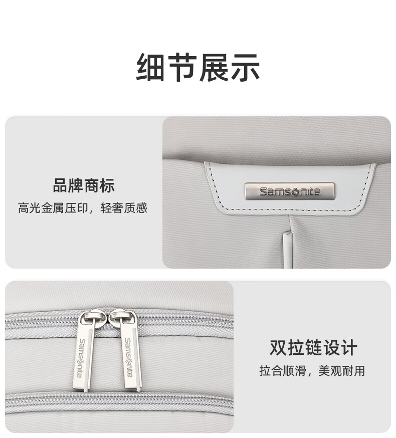 独立13.3英寸电脑仓,魔术贴固定,更好保护电脑;背部肩带可隐藏设计,可双肩,可手提;;顺滑触感,防泼耐磨;
