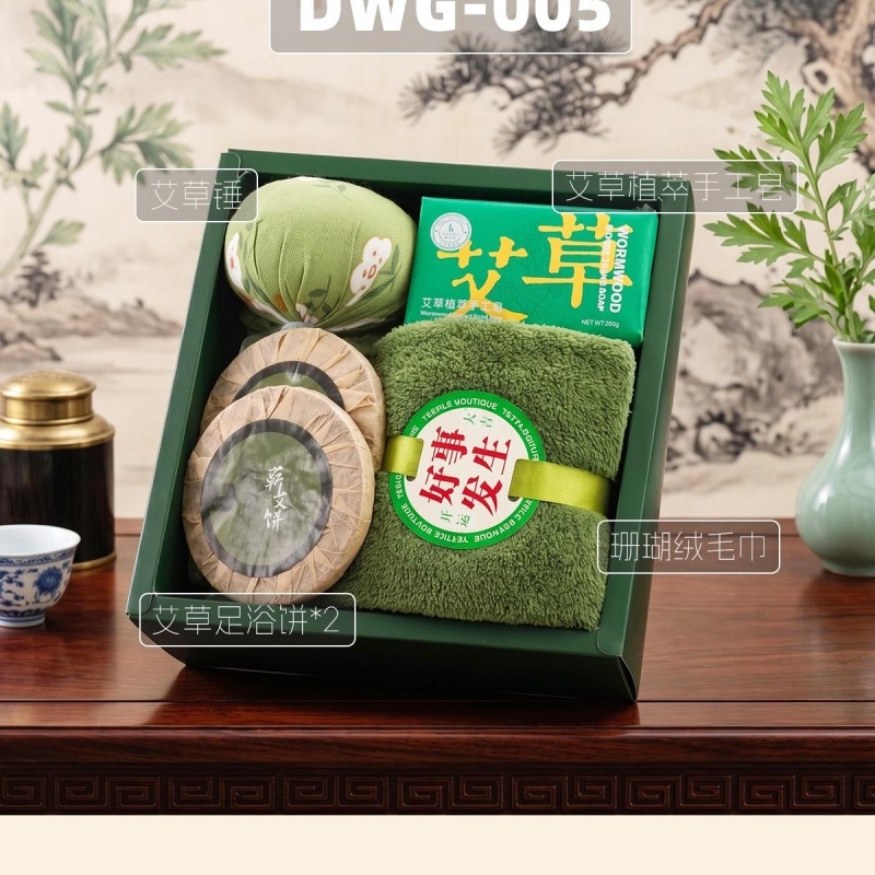 组合:蕲艾饼30g*2、艾草养生锤*1、韩方莉艾草植萃皂*1、好事发生毛巾35*74CM
