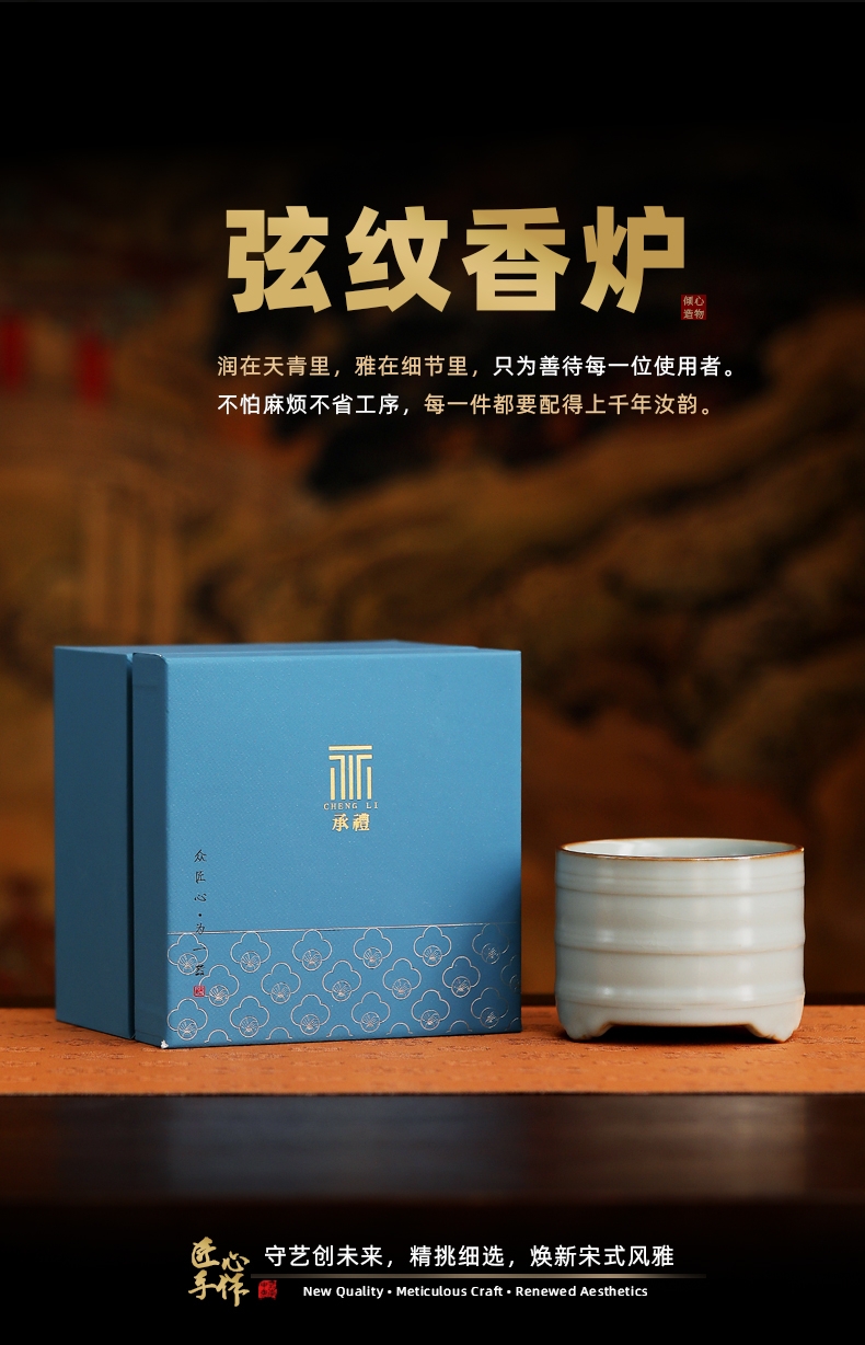 承礼 汝窑弦纹香炉茶道禅意
