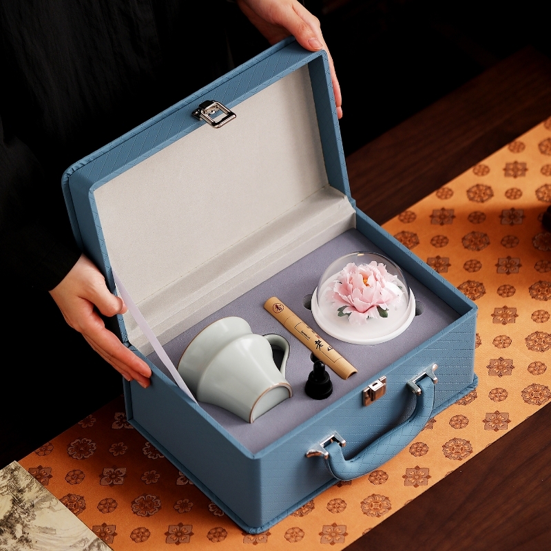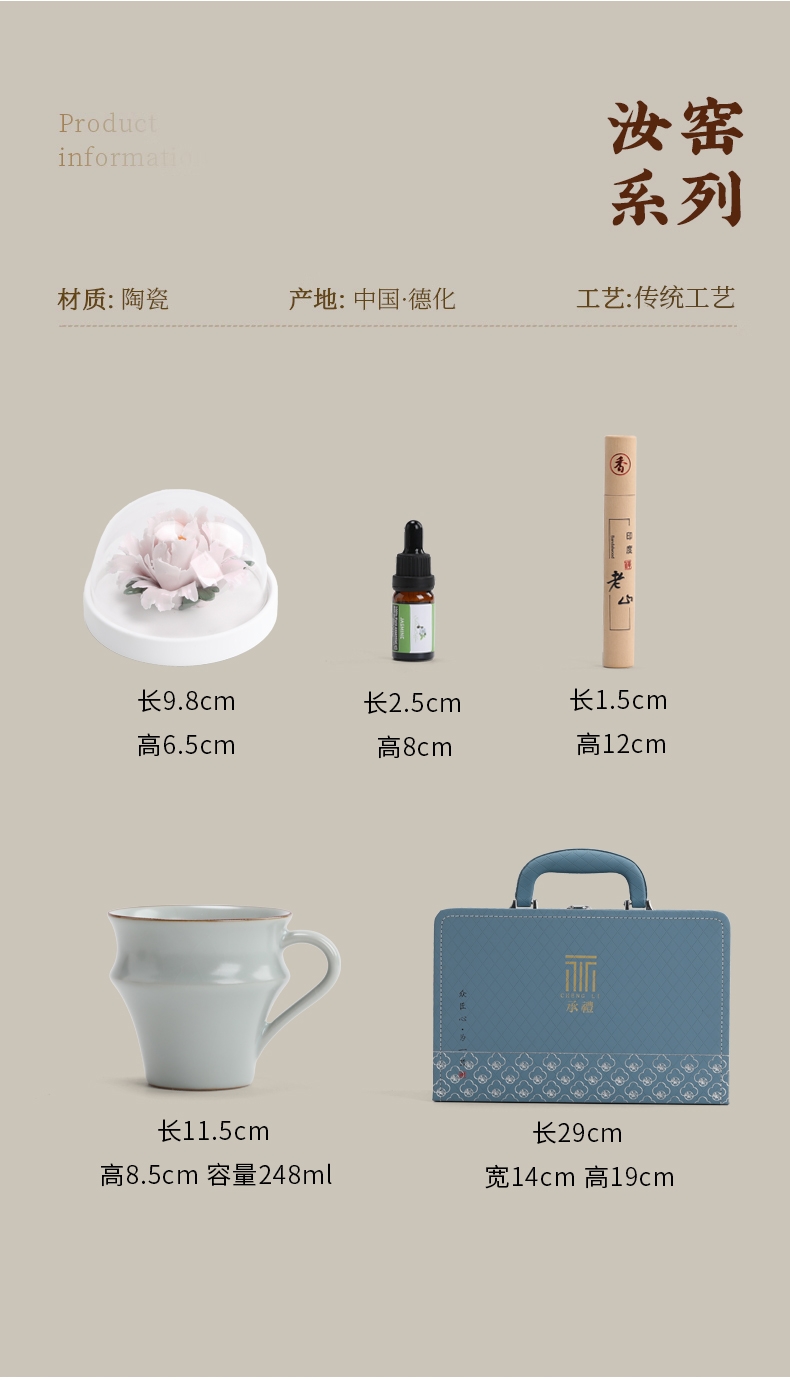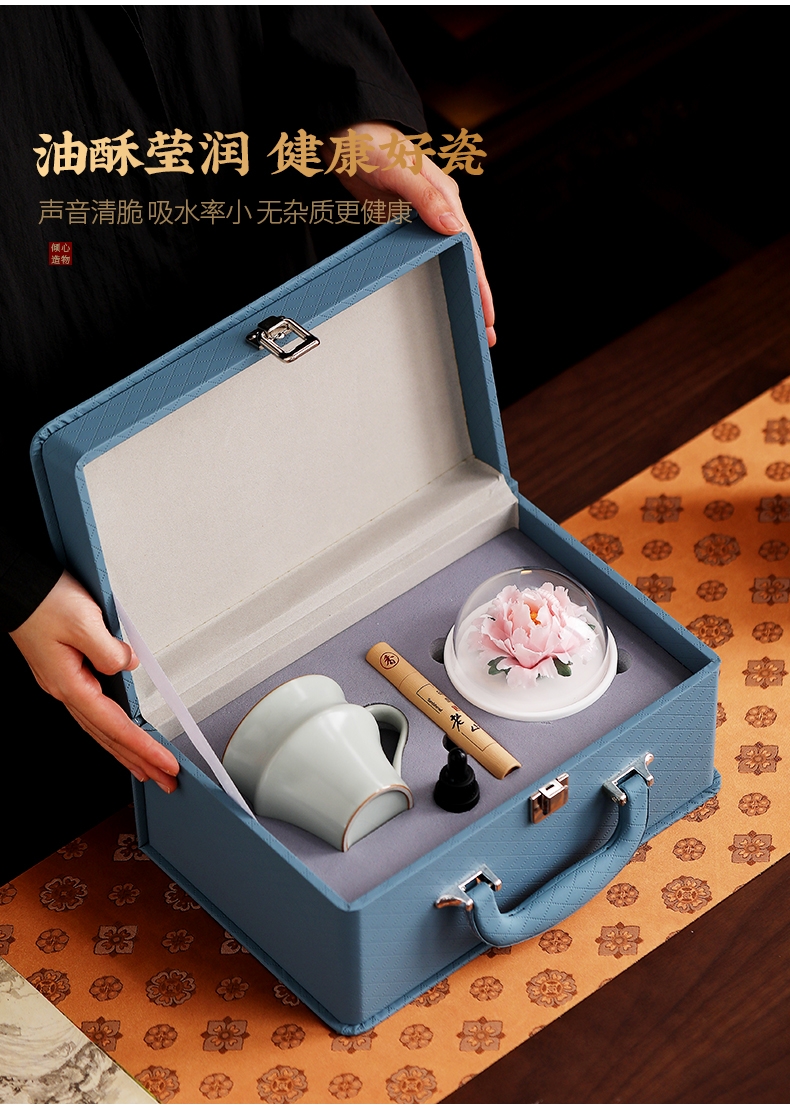 国色香颂非遗白瓷牡丹花汝窑茶杯礼盒;高端商务礼品;送礼自用