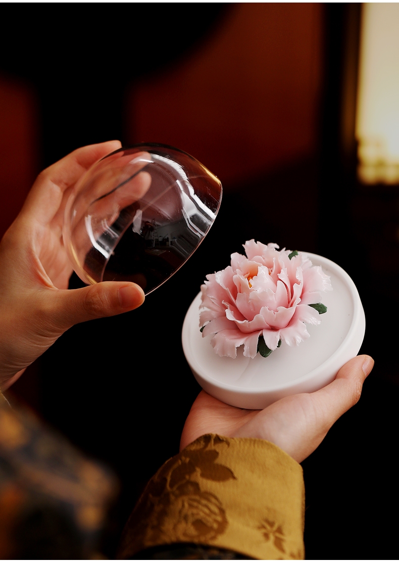 承礼 国色香颂非遗白瓷牡丹花汝窑茶杯