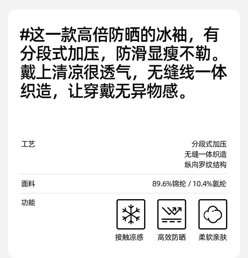 分段加压,无缝线,无异物感;织造工艺不易下滑;纵向罗纹结构,视觉显长显瘦