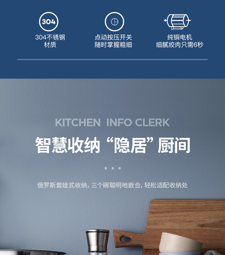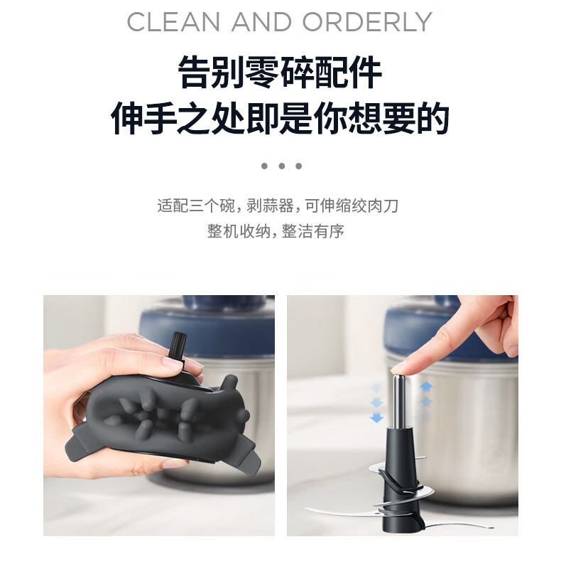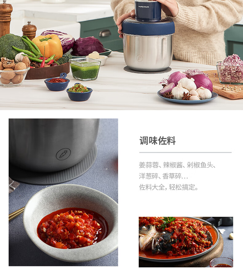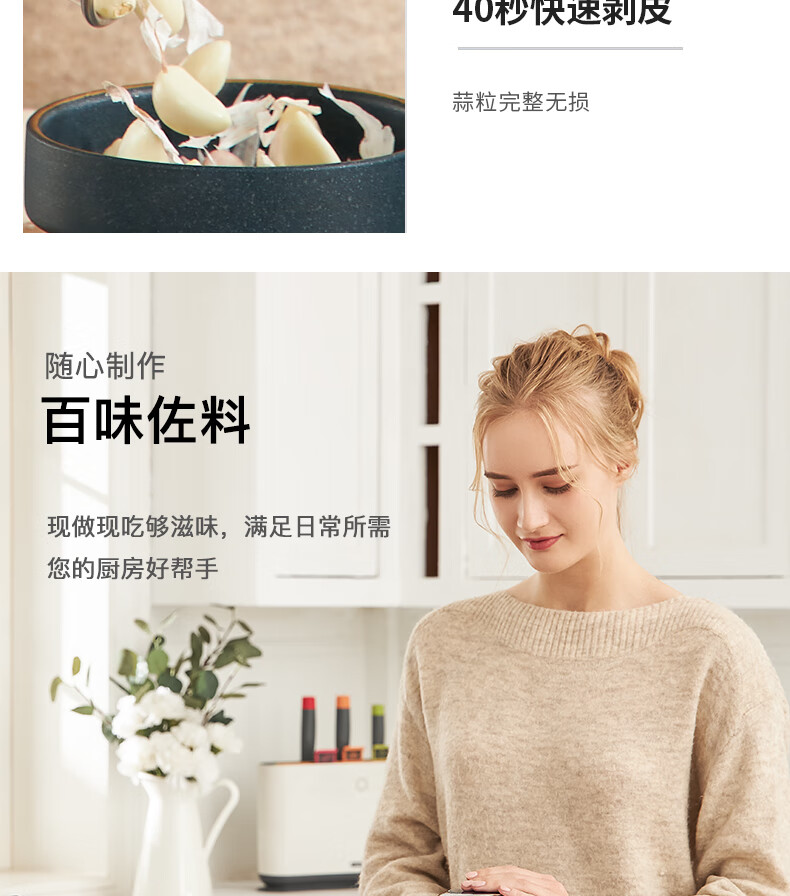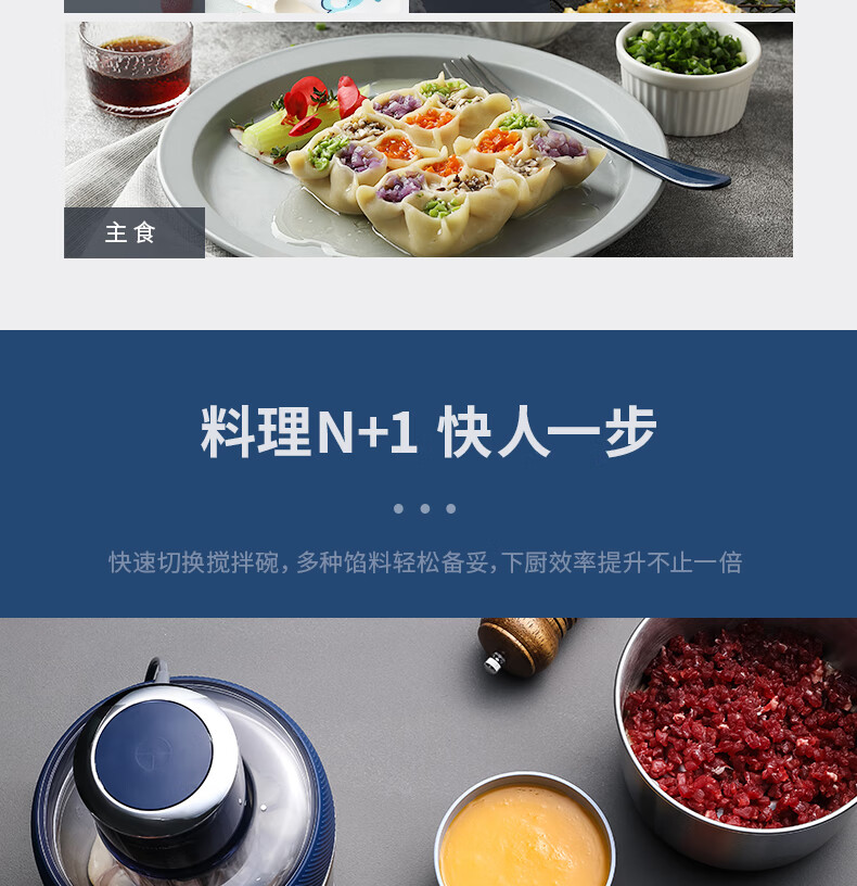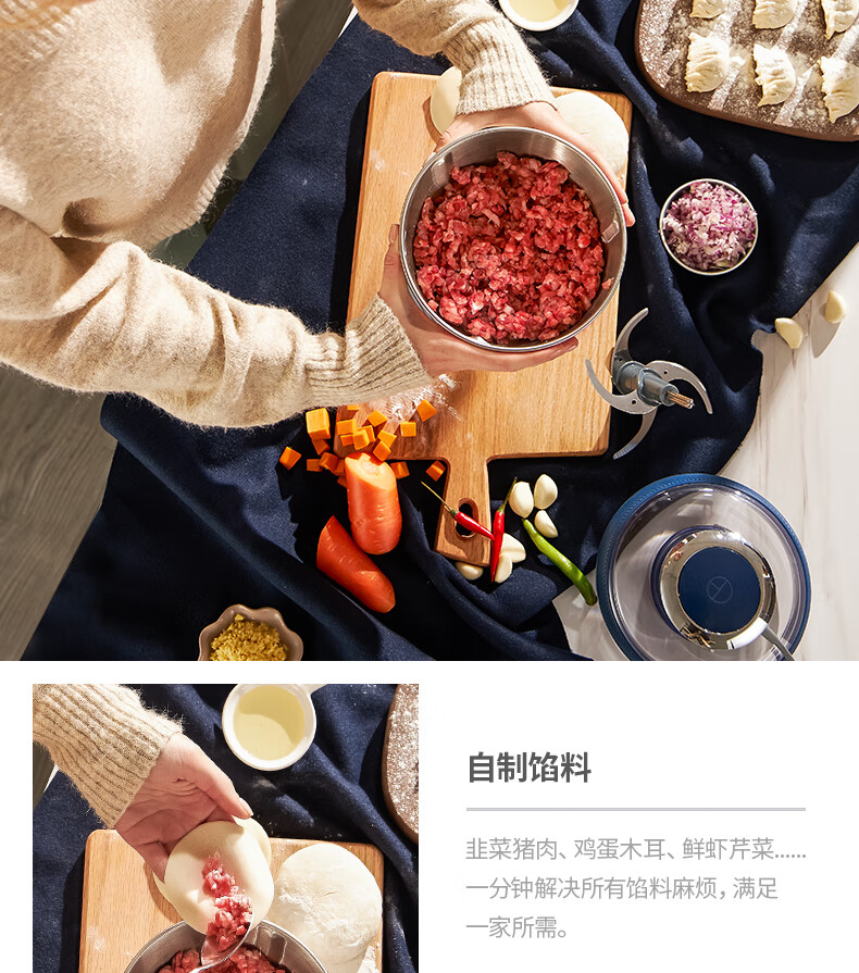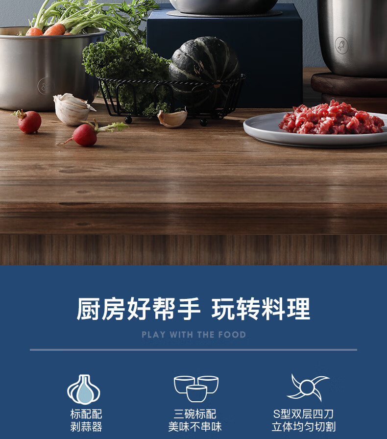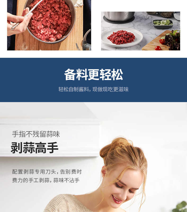 低噪音运行;一键懒人操作;婴儿辅食、蔬菜、肉类专碗专用