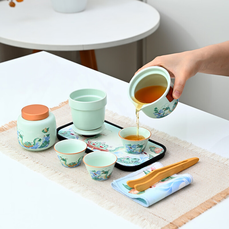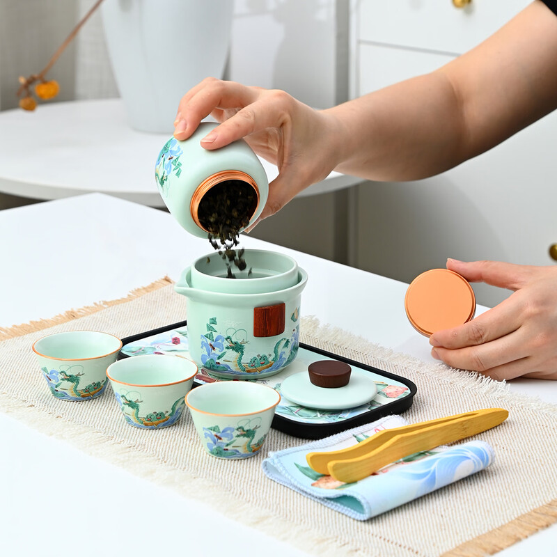 配置清单:一壶三杯 茶叶罐 茶盘 茶夹 茶巾 旅行包