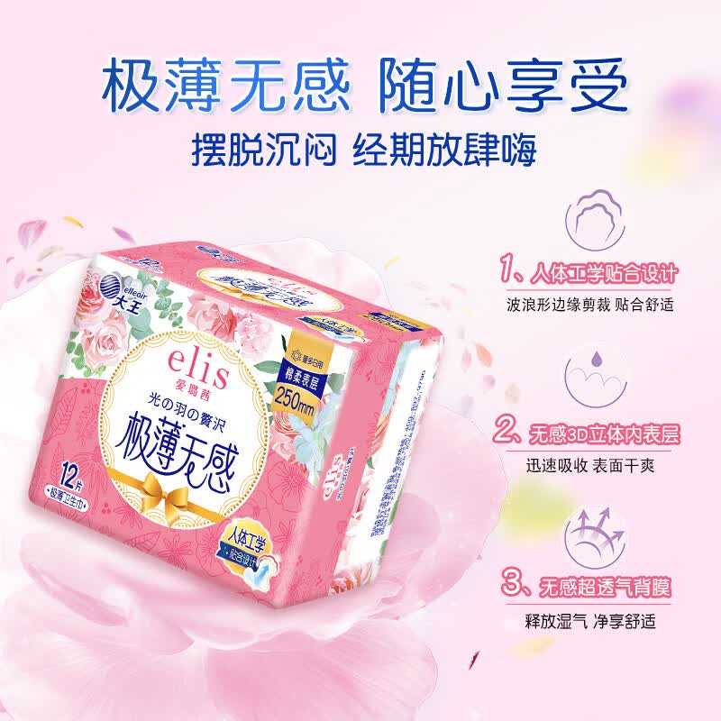 干爽无忧 告别潮湿黏腻;透气背膜 疏散闷热感;纤巧芯体 柔然又贴合