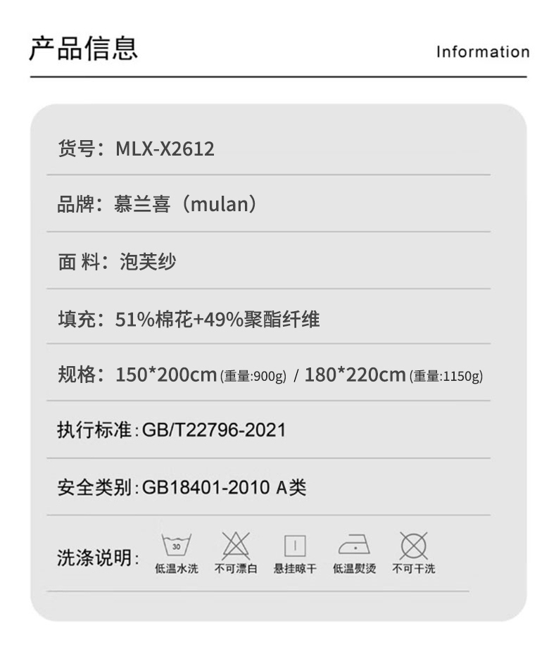 慕兰喜 泡芙纱云感棉花夏被MLX-X2612