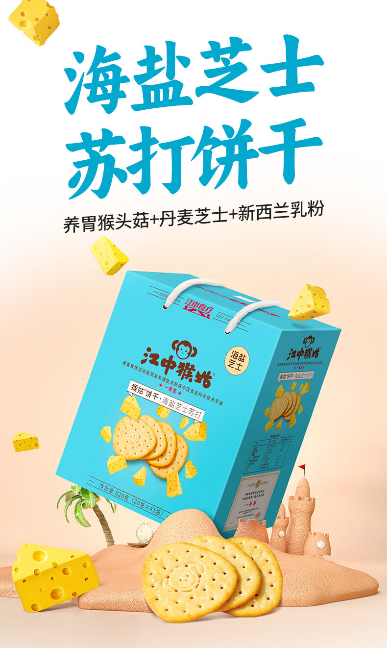 海盐芝士咸味;苏打猴头菇饼干820g;休闲零食礼盒