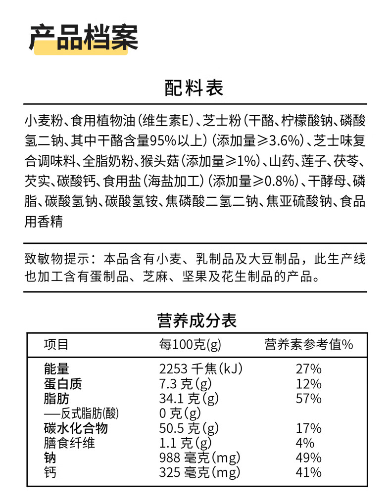 配置清单:江中猴姑海盐芝士苏打饼干820g