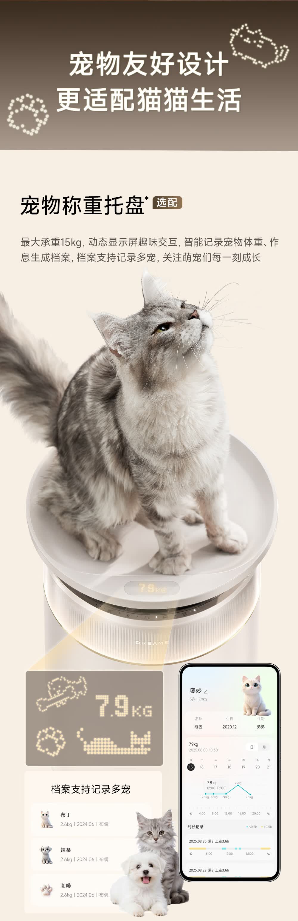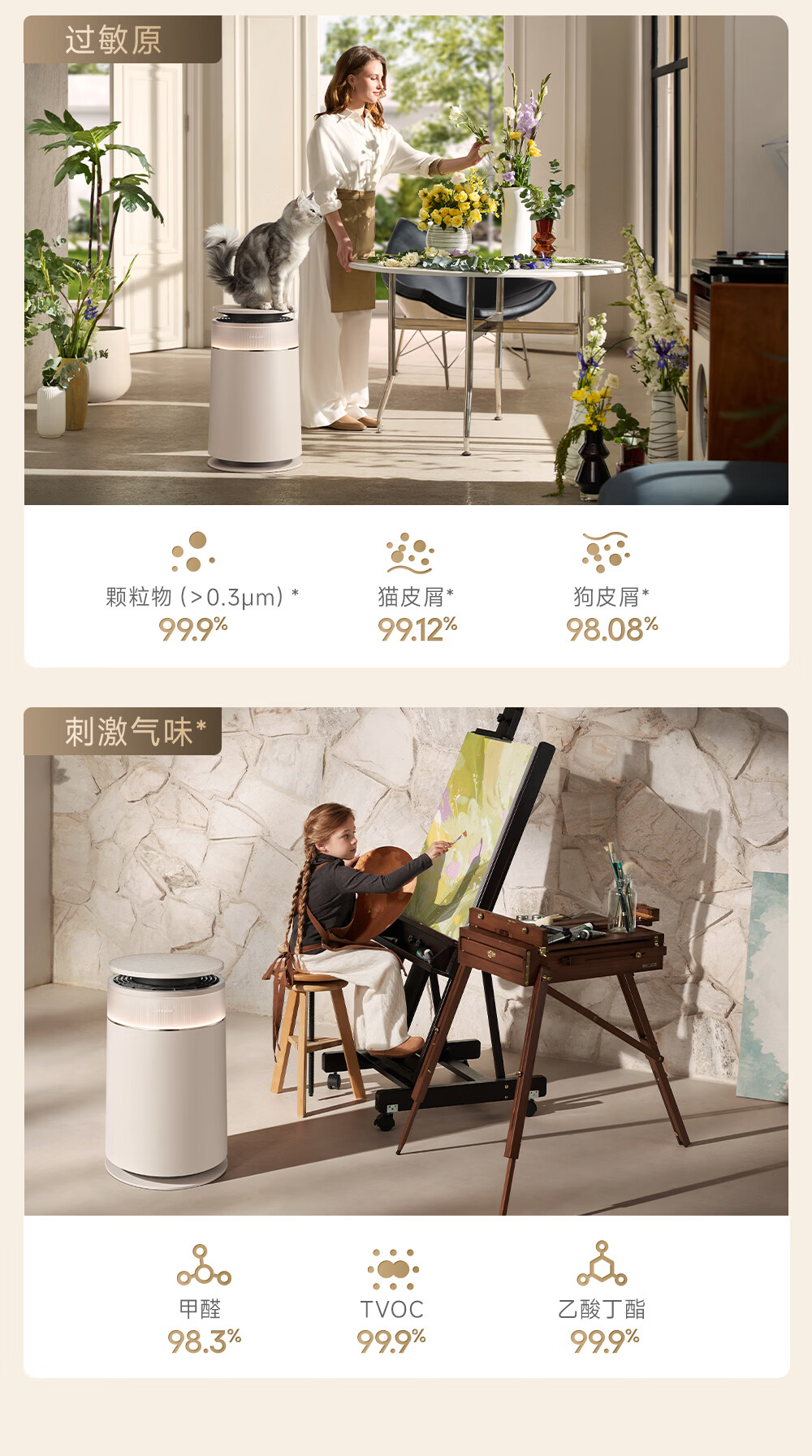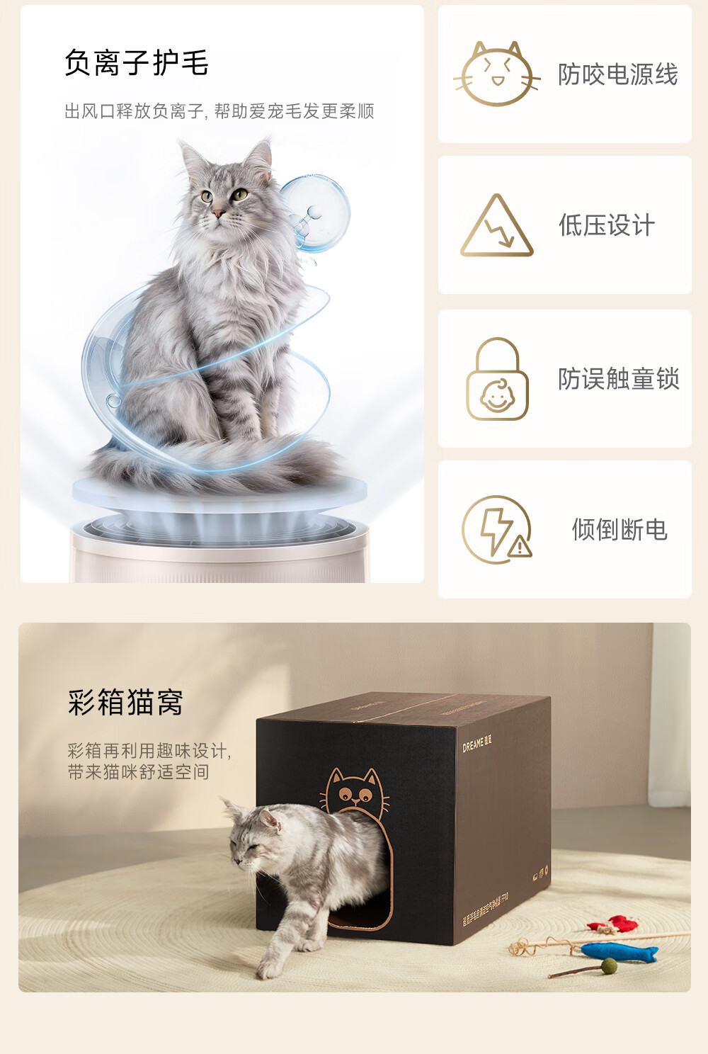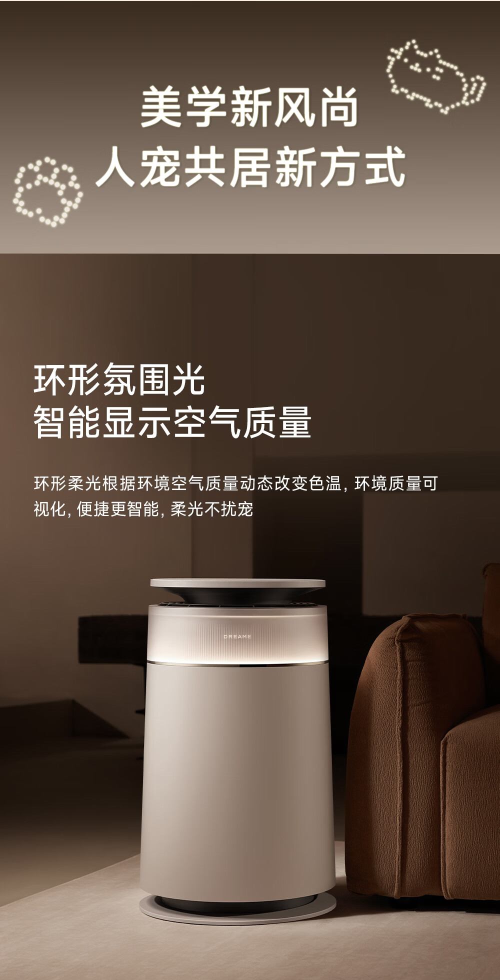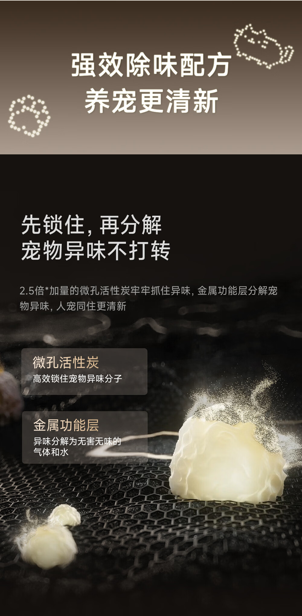主动式动辊集毛自清洁长效守护毛孩子;免维护滤网0耗材猫毛不“捣乱”;六重过滤深层净化层层守护宠家空气