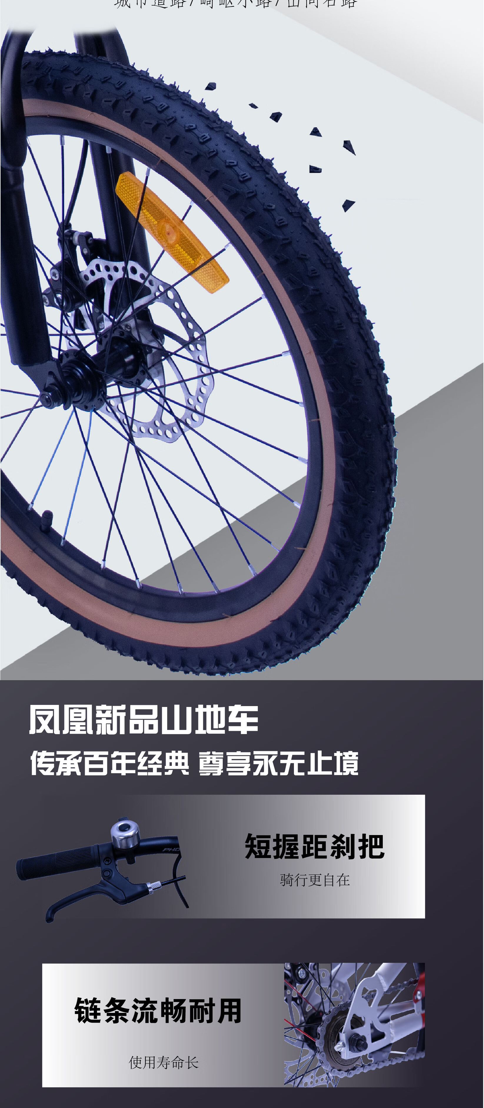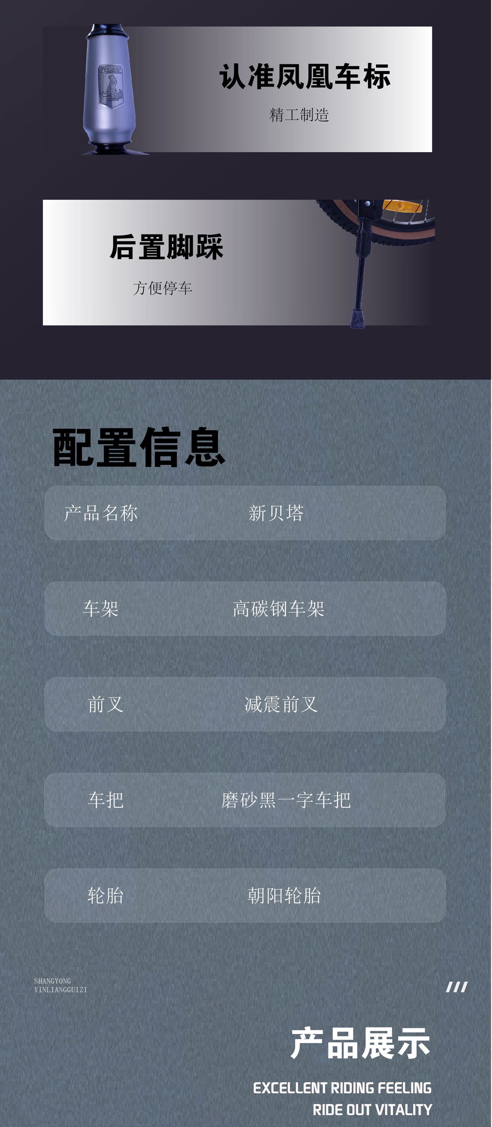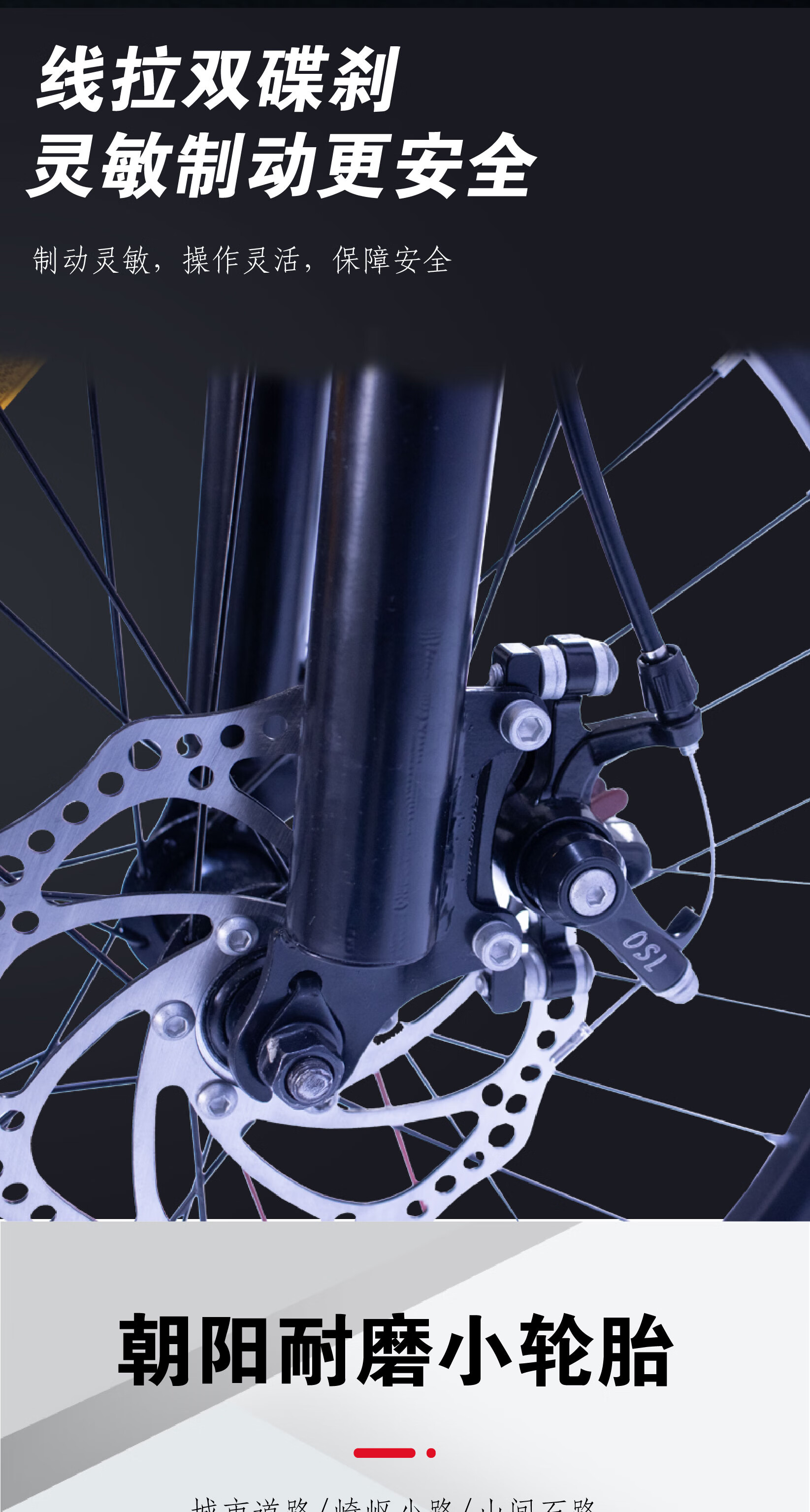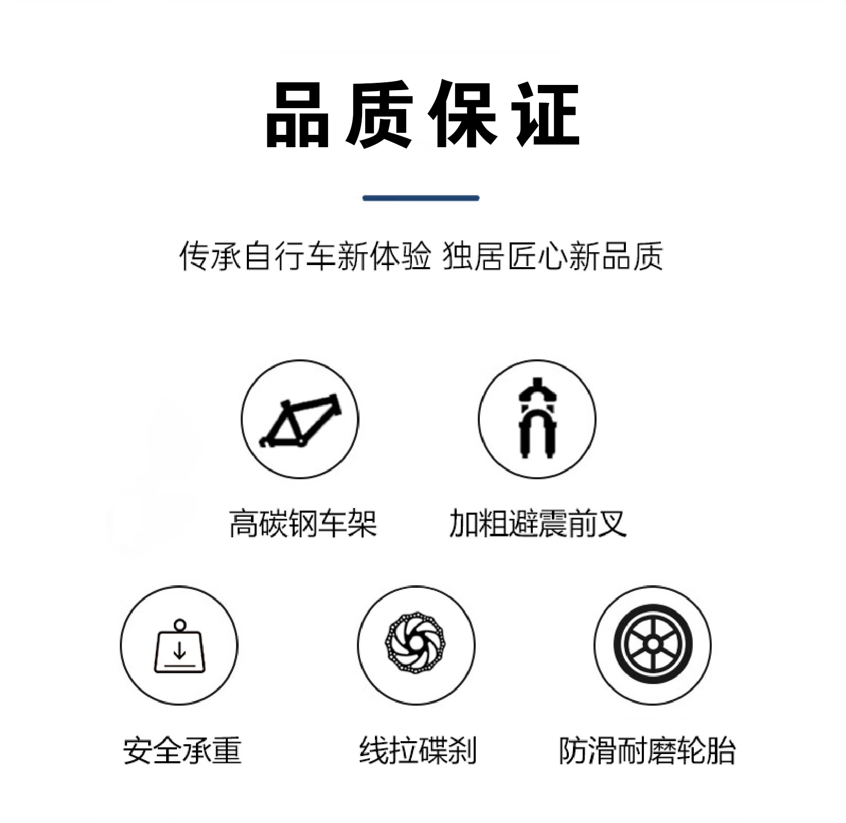 高碳钢车架,车架负重强不易变形;;仅需4步轻松安装; 密封中轴顺滑骑行;;机械制动双碟刹,灵敏制动; 避震前叉缓解震荡;