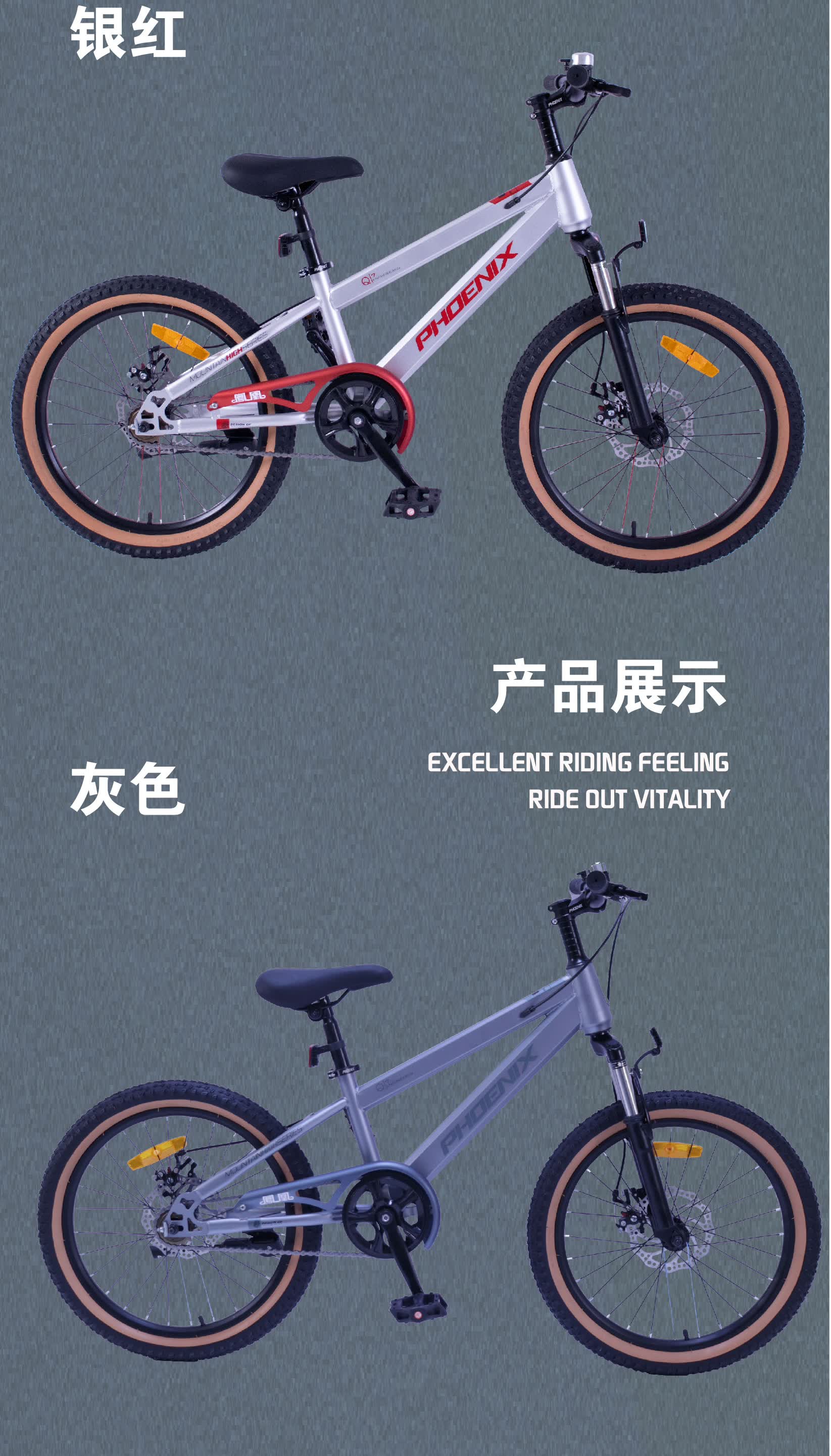 凤凰 碳钢机械双碟刹学生车山地自行车TT-20