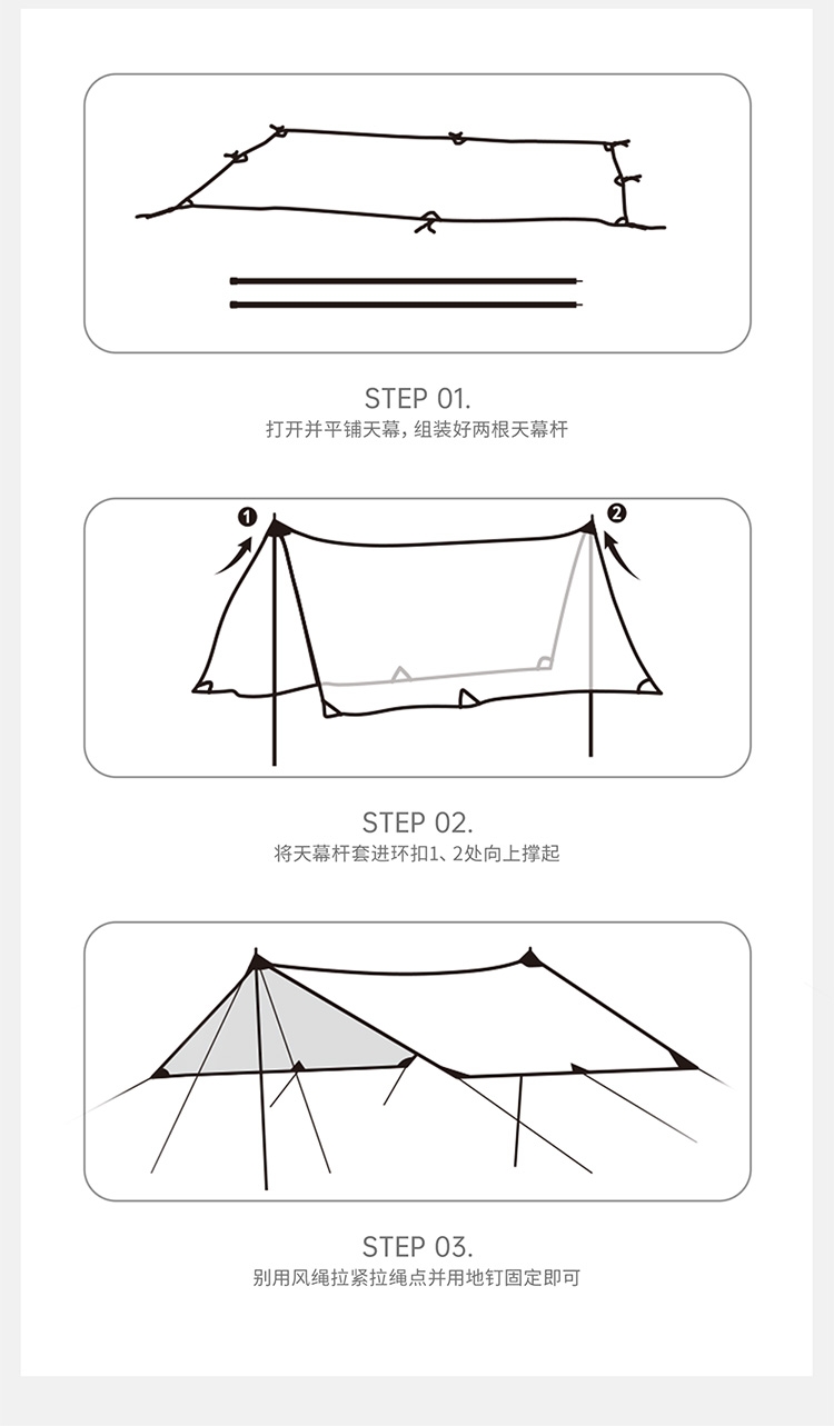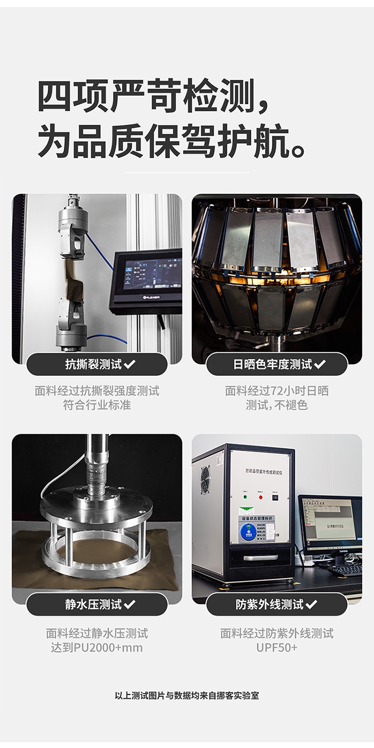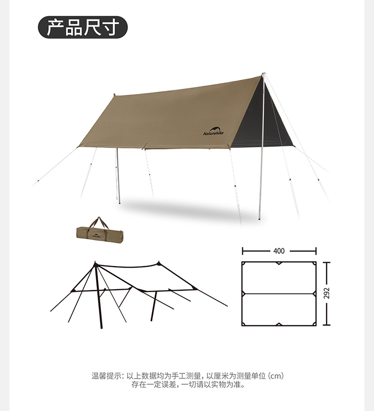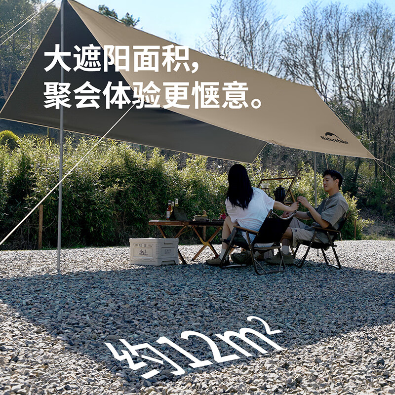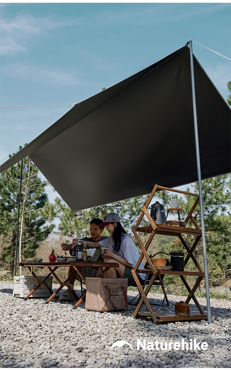 粗壮天幕杆,加厚杆壁更稳固。;隔热遮光,钛黑胶防晒;大遮阳面积,聚会体验更惬意。