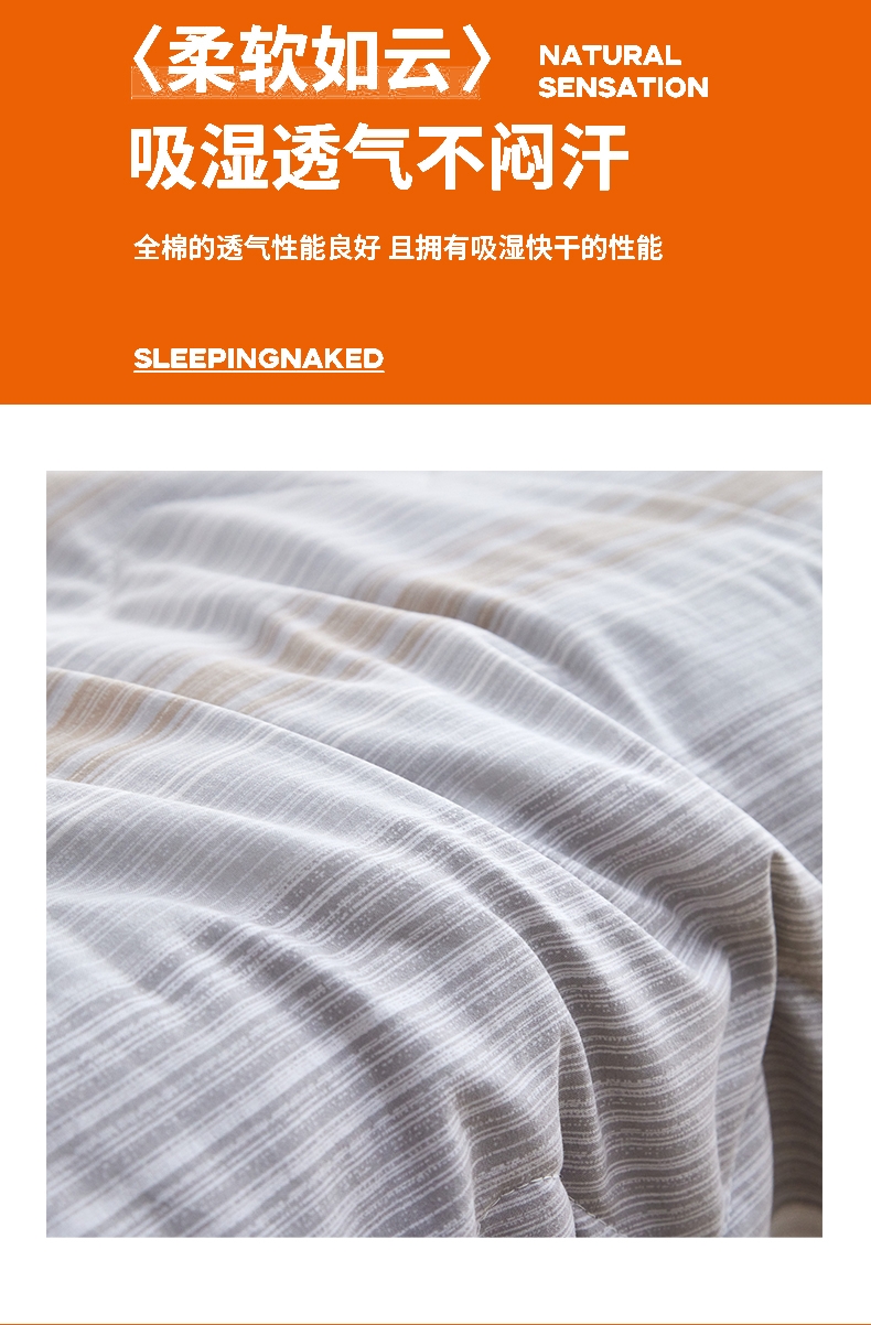 精选双层纱面料,使面料具有水洗以后的柔软特性;手感像云朵,蓬松不硬。洗后更软(纤维空隙打开);湿气、热气快速散出,不易起痱子、湿疹。
