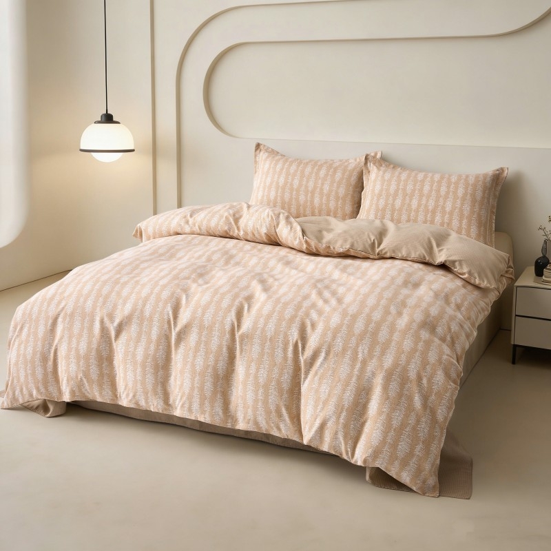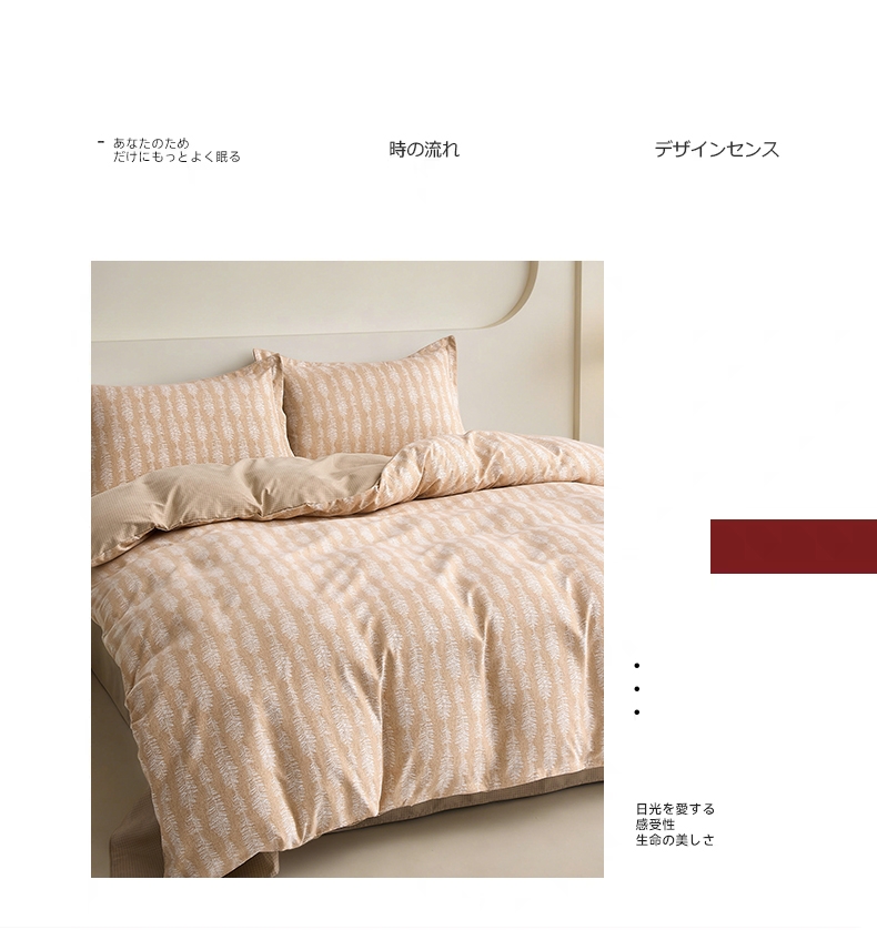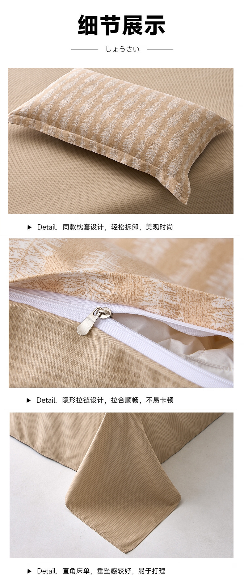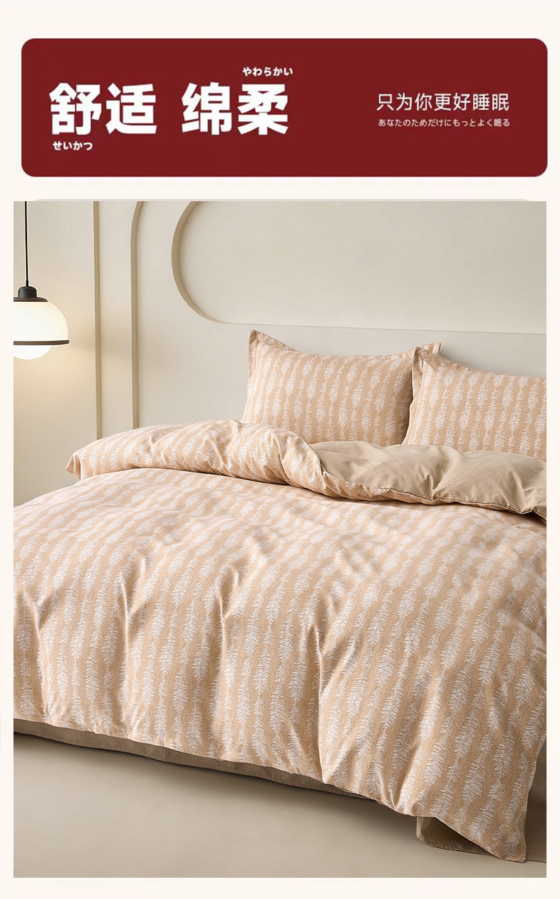 精选有氧棉磨毛面料,使面料具有水洗以后的柔软特性;采用绿色环保的印染工艺,不起球不褪色;精致简约的绣花工艺结合无印良品特有的简约风设计