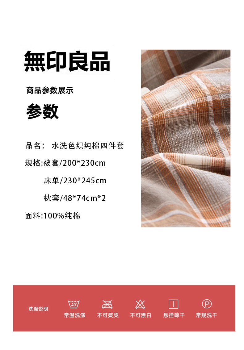 無印良品 水洗色织纯棉四件套WY-260315