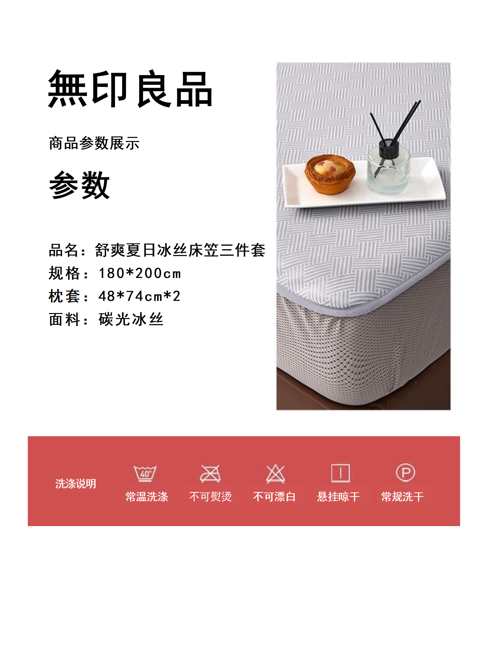 無印良品 舒爽夏日冰丝床笠三件套WY-260317