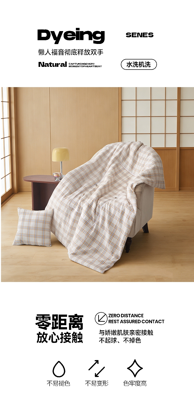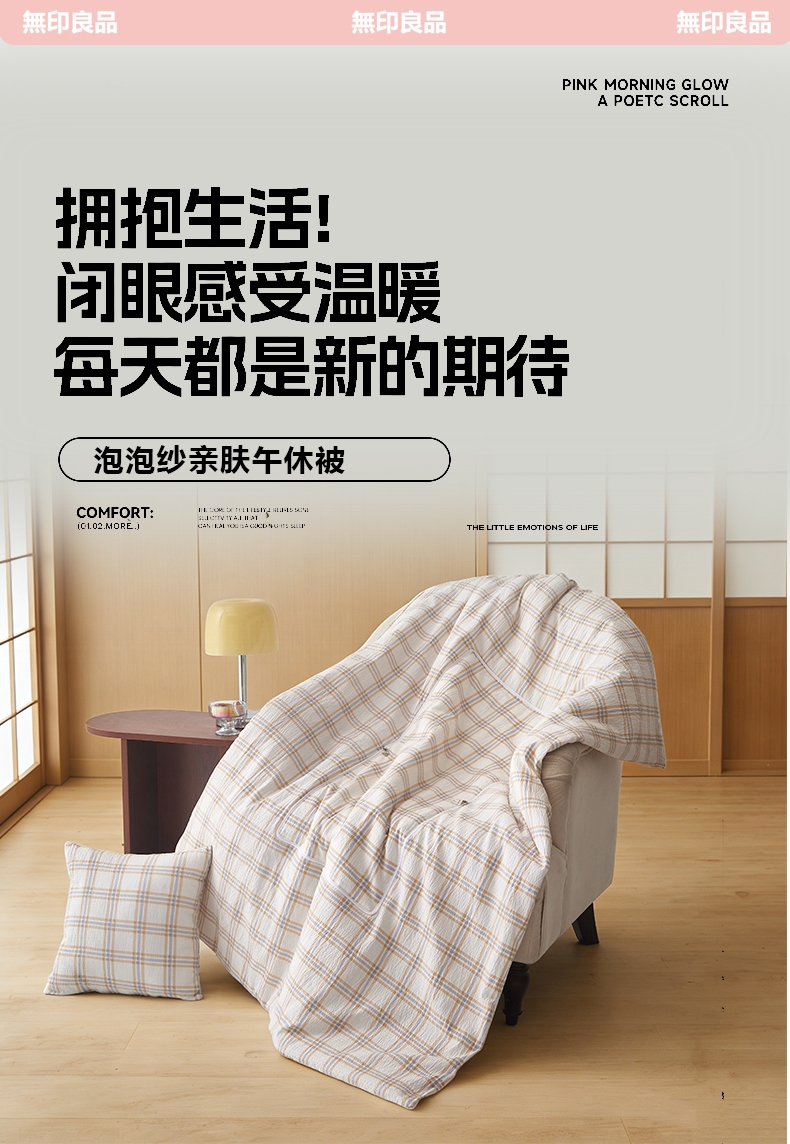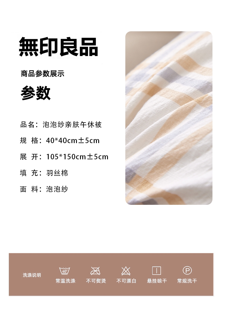 甄选亲肤泡泡纱面料 ,贴身舒适;整个产品倾心朴实设计, 抱枕、被子、披肩等多功能使;宅家追剧,办公室午休,出差旅行,有此宝贝不再烦忧!