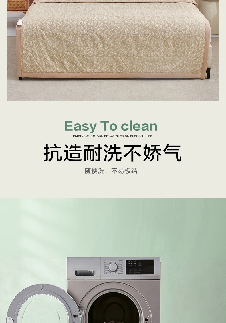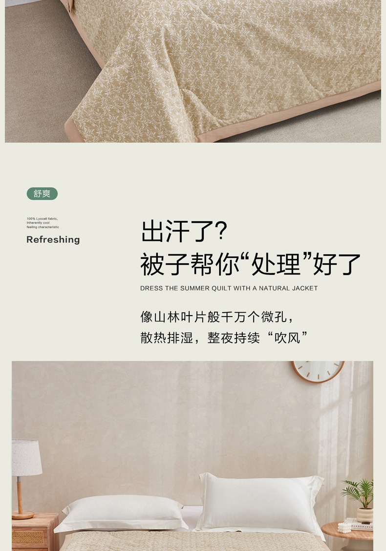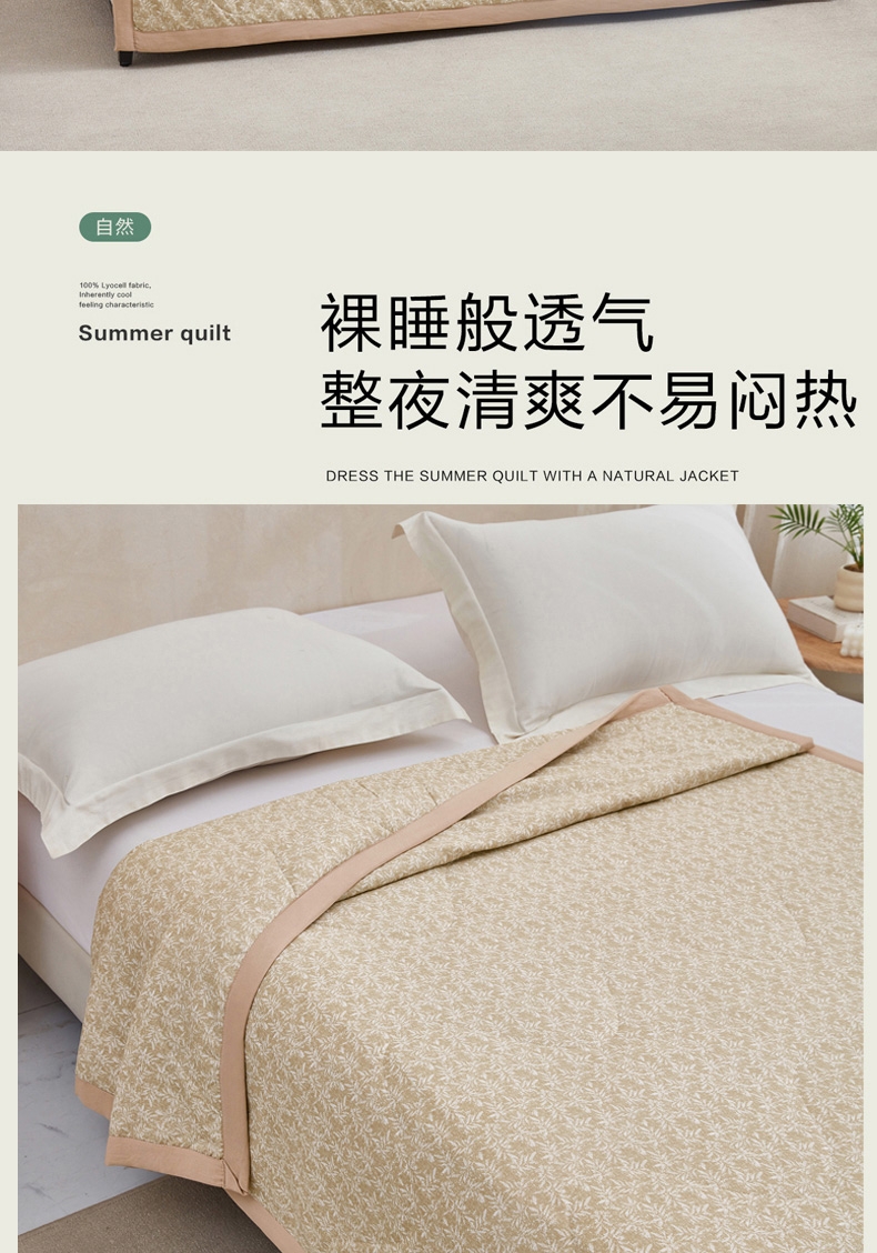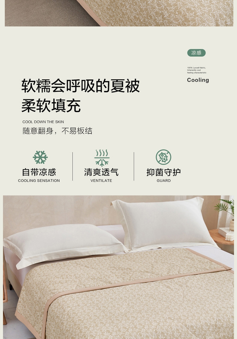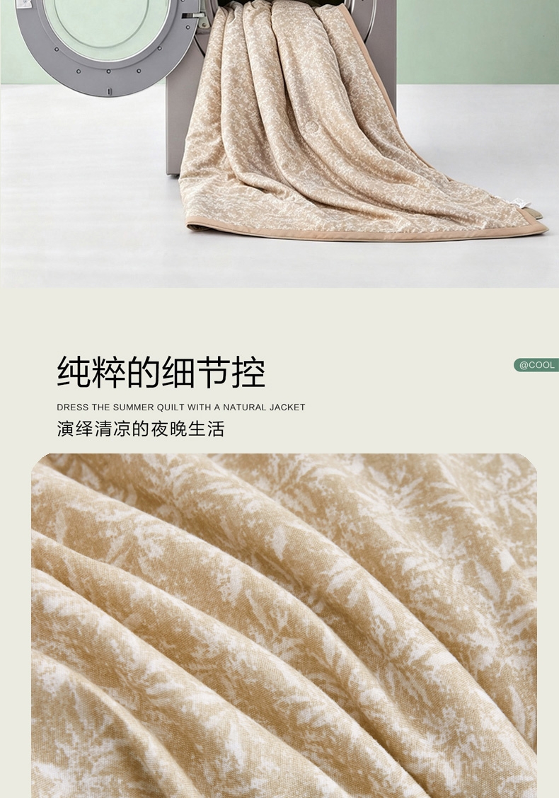 整条被子采用整张棉填充,机洗不变形 ;多点位绗缝技术,久用不跑偏 ;面料注入金银花抗菌因子,具有抗细菌,解热作用