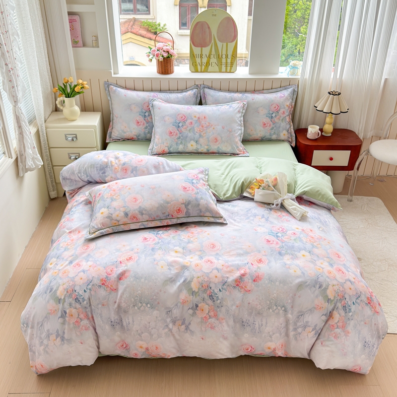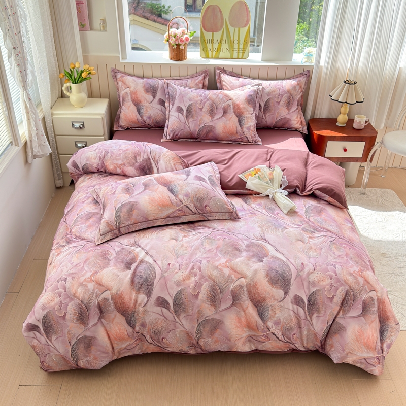 甄选超柔细纱棉面料;柔软高支高密;放心接触细腻透气;细纱棉面料柔软亲肤排湿透气如坠云端;印花搭配AB双版设计,给床品增添更多层次感