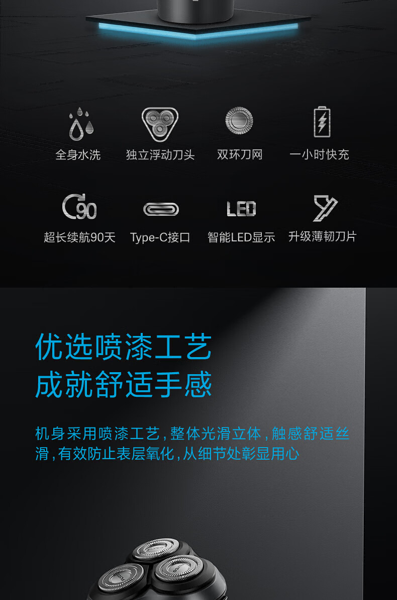 全身水洗;双环贴面刀网;浮动贴面剃须系统