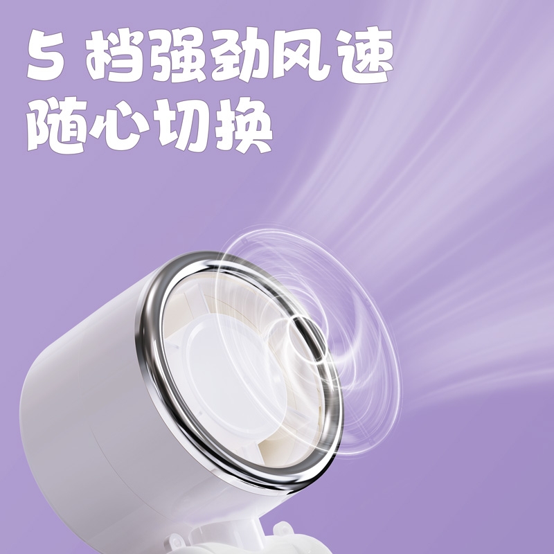 搭载5档风速调节设计,从轻柔自然风到强劲风;机身配备数字显示屏,实时显示风速档位(如 F5);用状态一目了然。持便捷 Type-C 充电口,