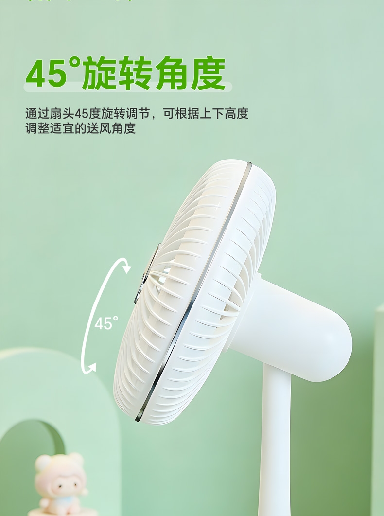 3档风速切换,低档位柔风静谧;Type-C快充 +长续航充电时间仅需 2-3小时;搭配 3.7V 大容量电池,低功耗设计