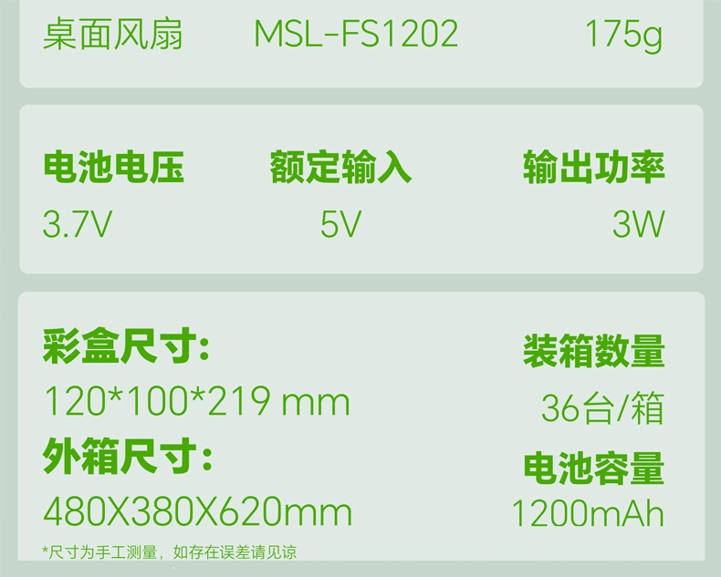 铭仕朗 桌面迷你usb充电风扇MSL-FS1202