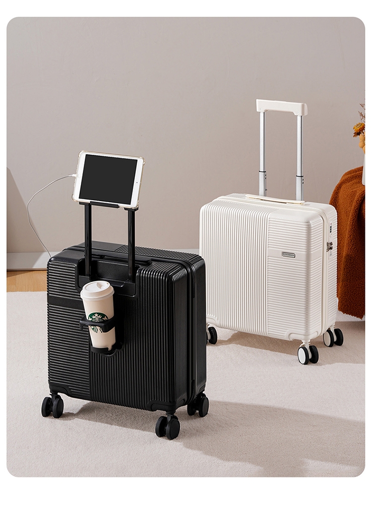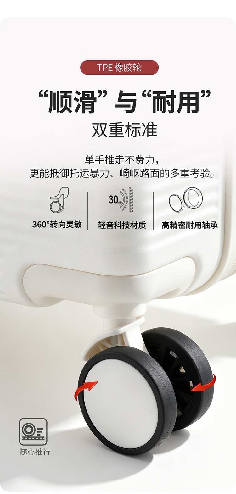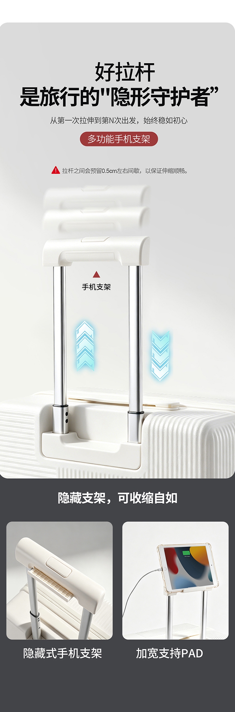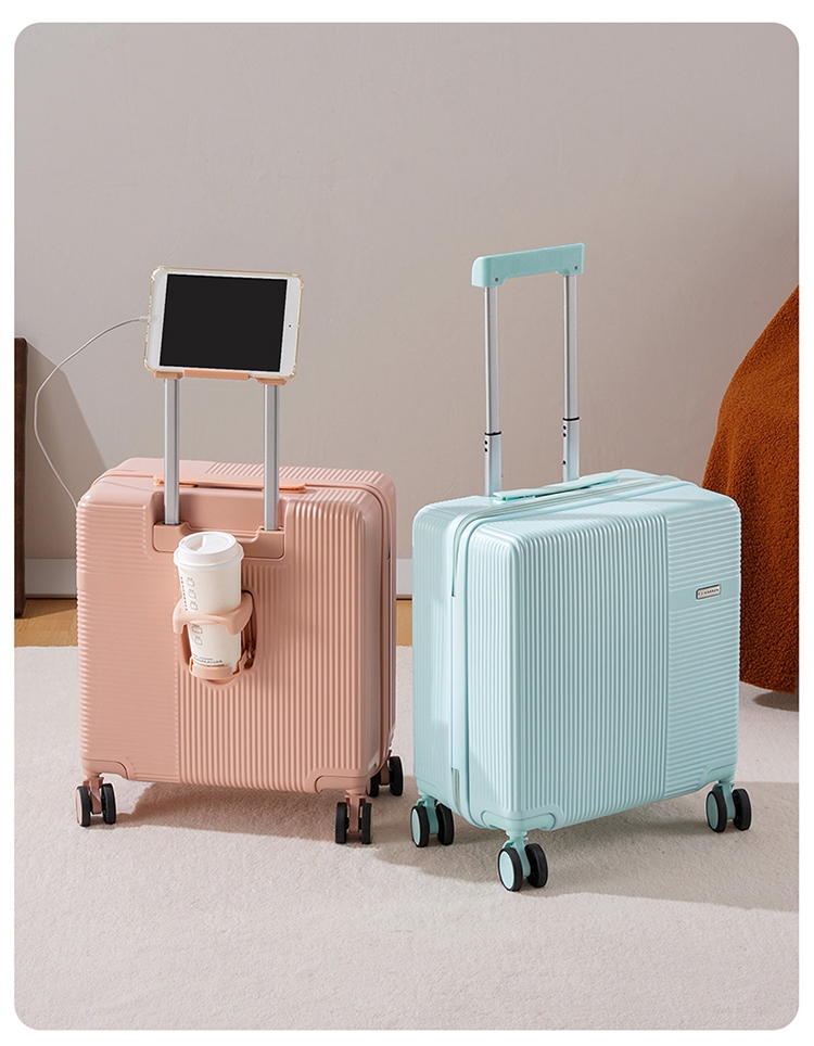 新一代人性化设计多功能拉杆箱,配置拉满,更具性价比;内里采用抑菌里布,干湿分离,分区合理;带USB及Type-C充电口,同时配置移动电源内袋