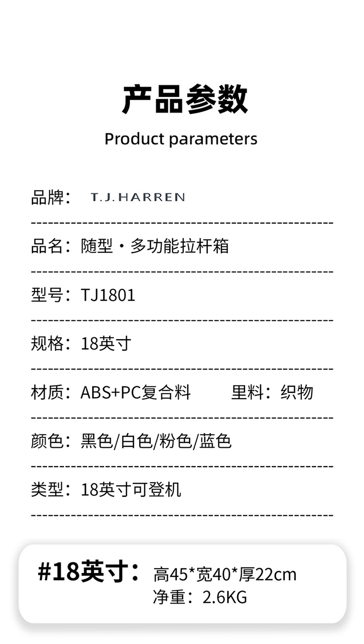 T.J.HARREN 蒂捷海伦随型多功能拉杆箱TJ1801