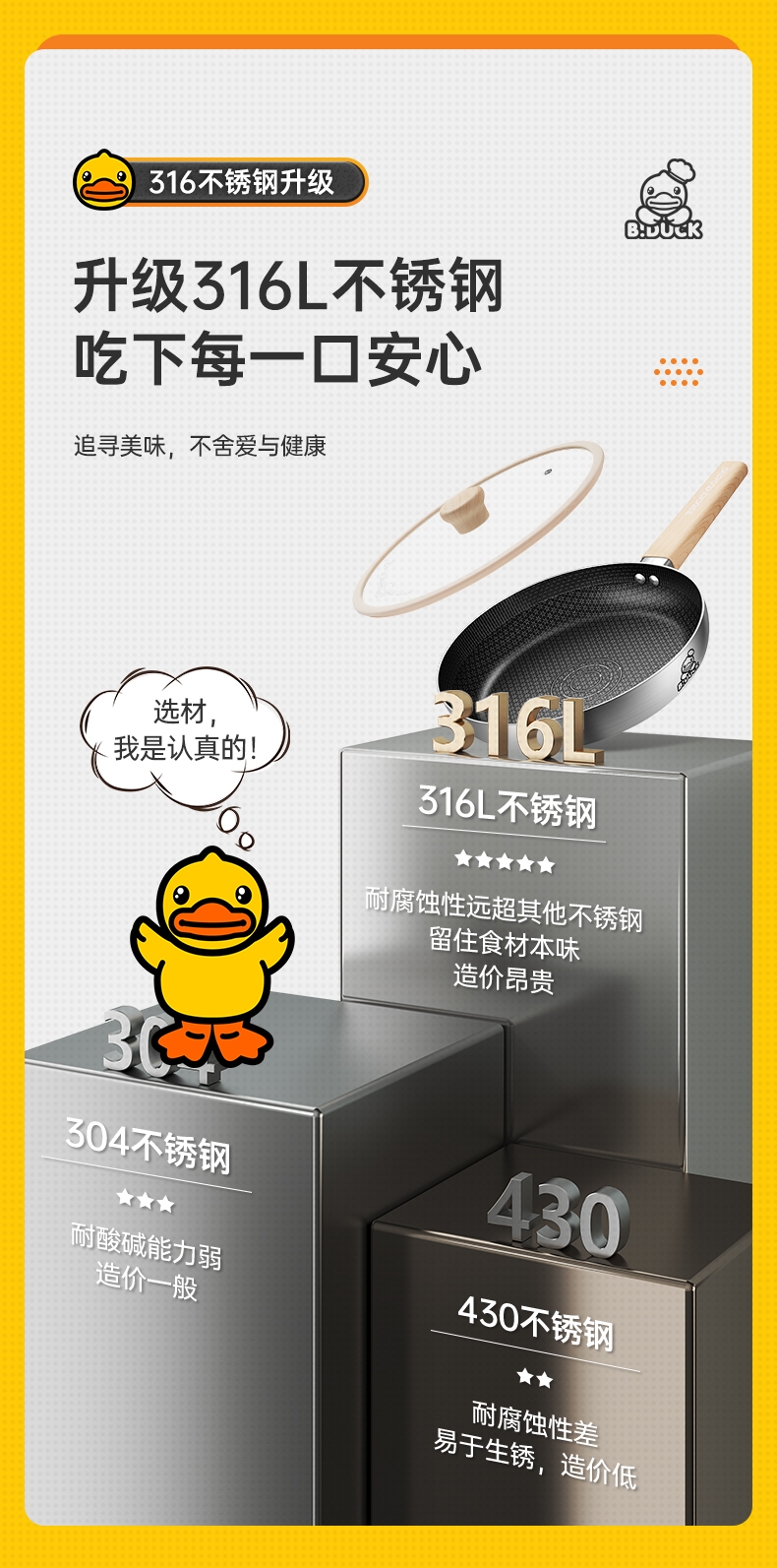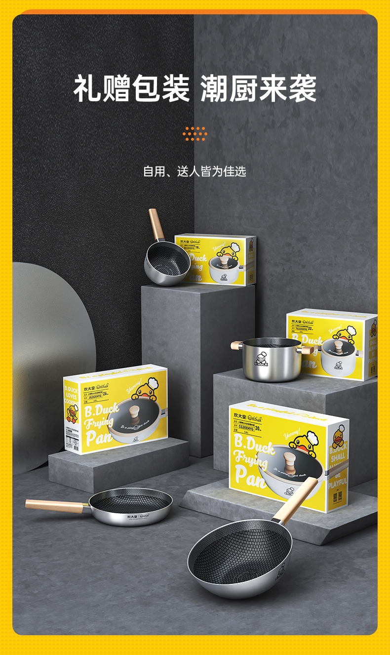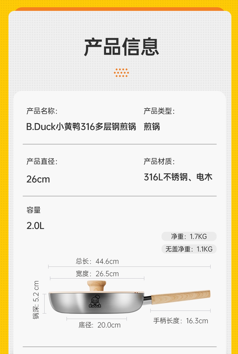 炊大皇 小黄鸭联名316不锈钢平底煎锅26cmJG26XHYG