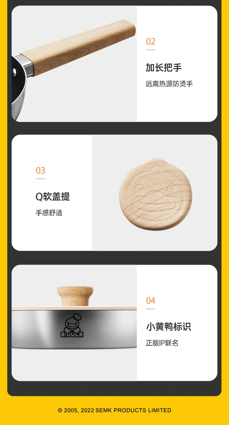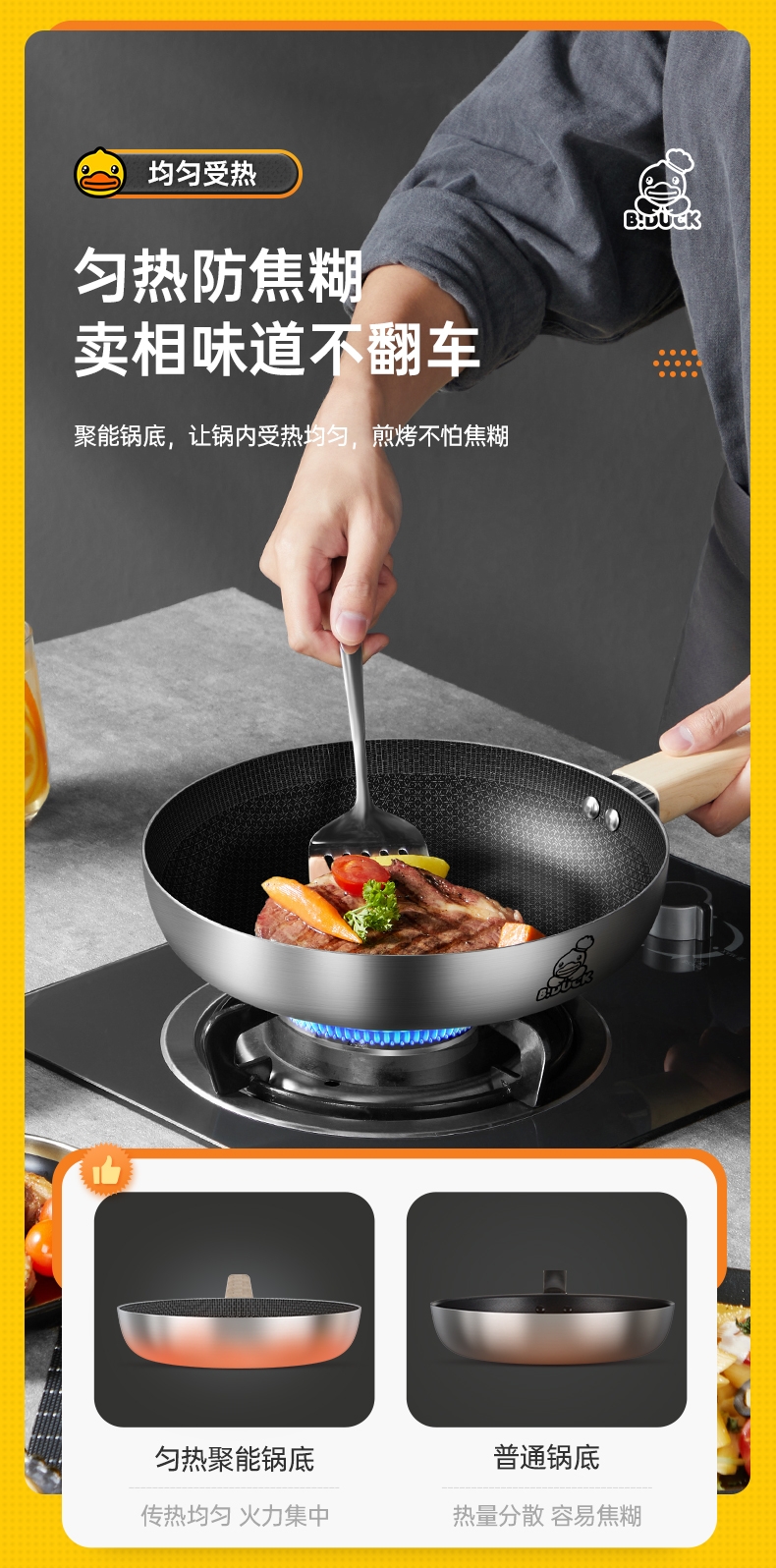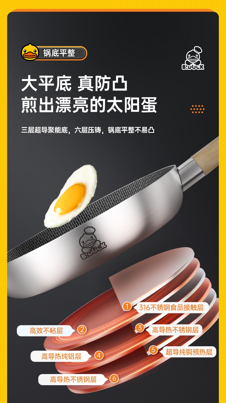 炊大皇 小黄鸭联名316不锈钢平底煎锅26cmJG26XHYG